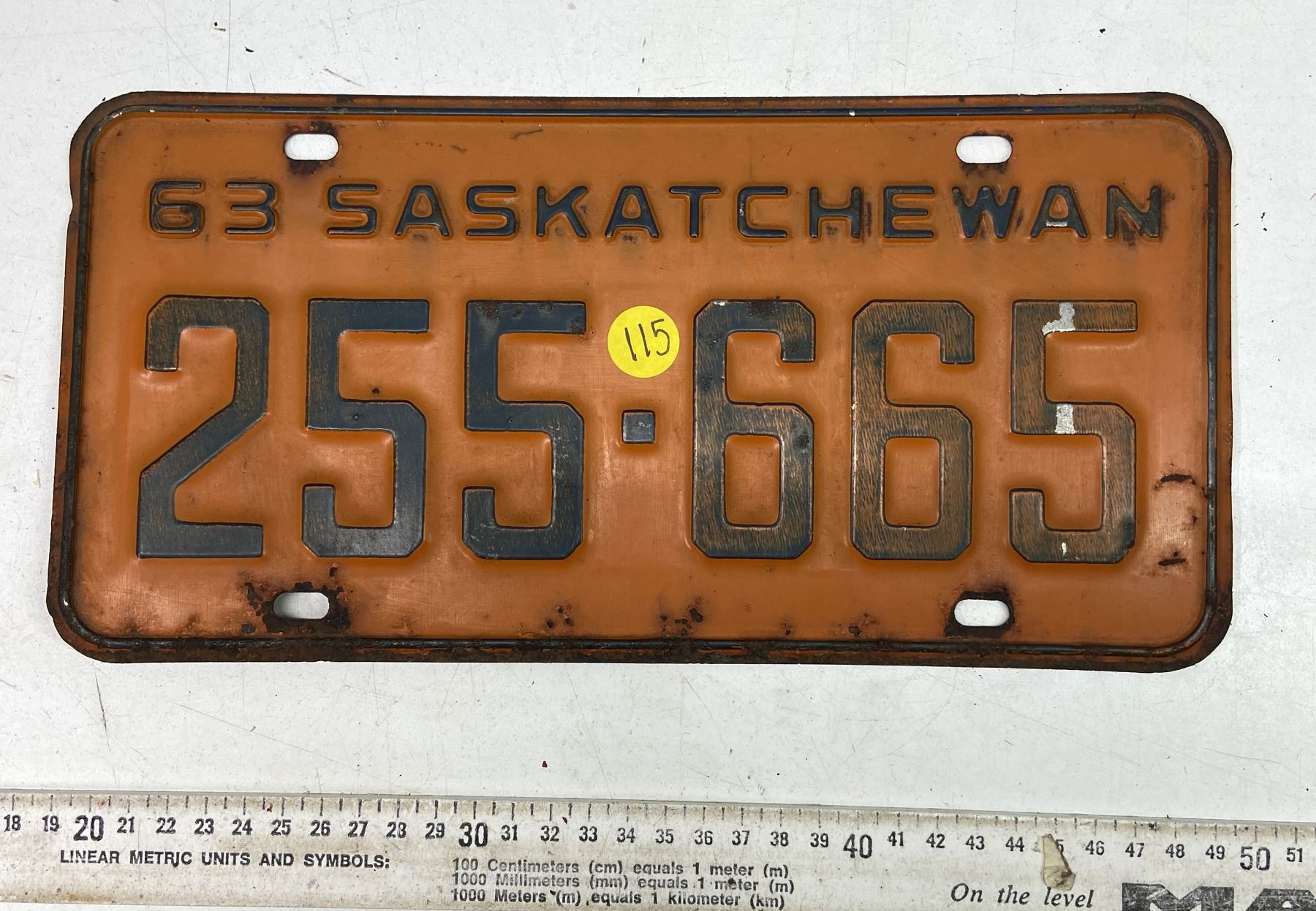 1963 Saskatchewan Canada Vintage License Plate 255-665