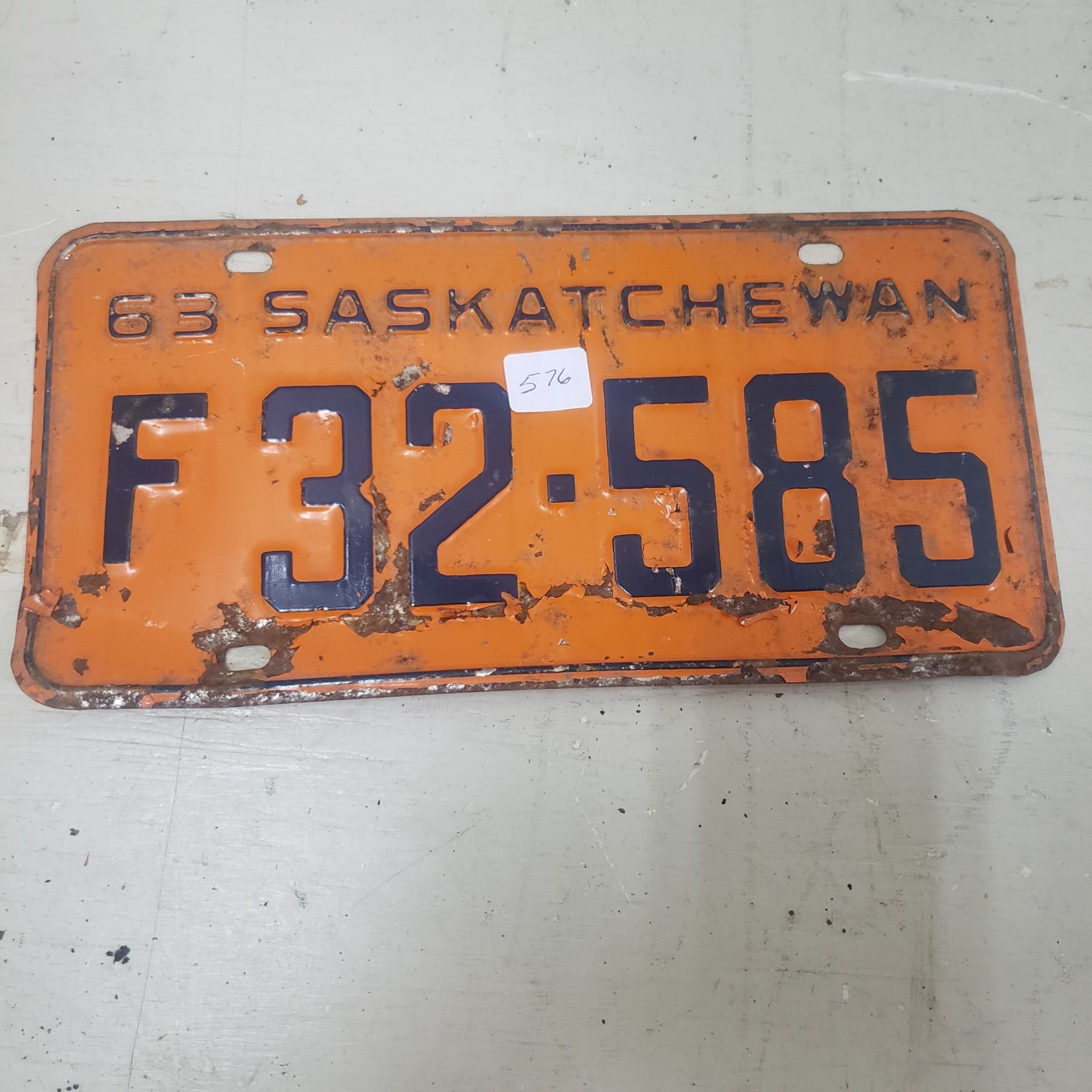 1963 Saskatchewan Liscence Plate vintage original Sask plate