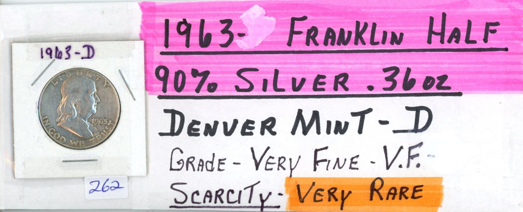 1963D Franklin US Half Dolar Coin - 90% Silver