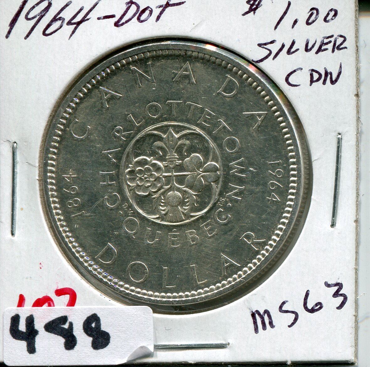 1964 CNDN SILVER DOLLAR CHARLOTETOWN PEI 1864 CONFERENCE DOT