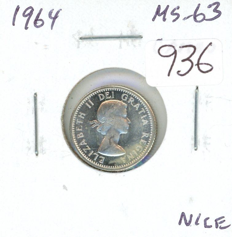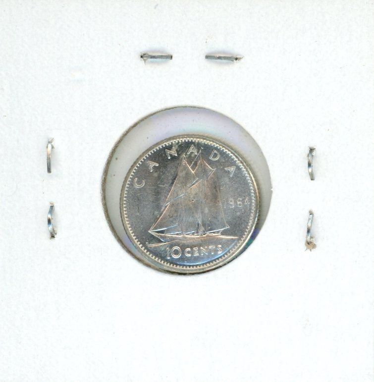 1964 Canadian Silver 10 Cents. MS-63 with Cameo contrast. Bright White. Nice.