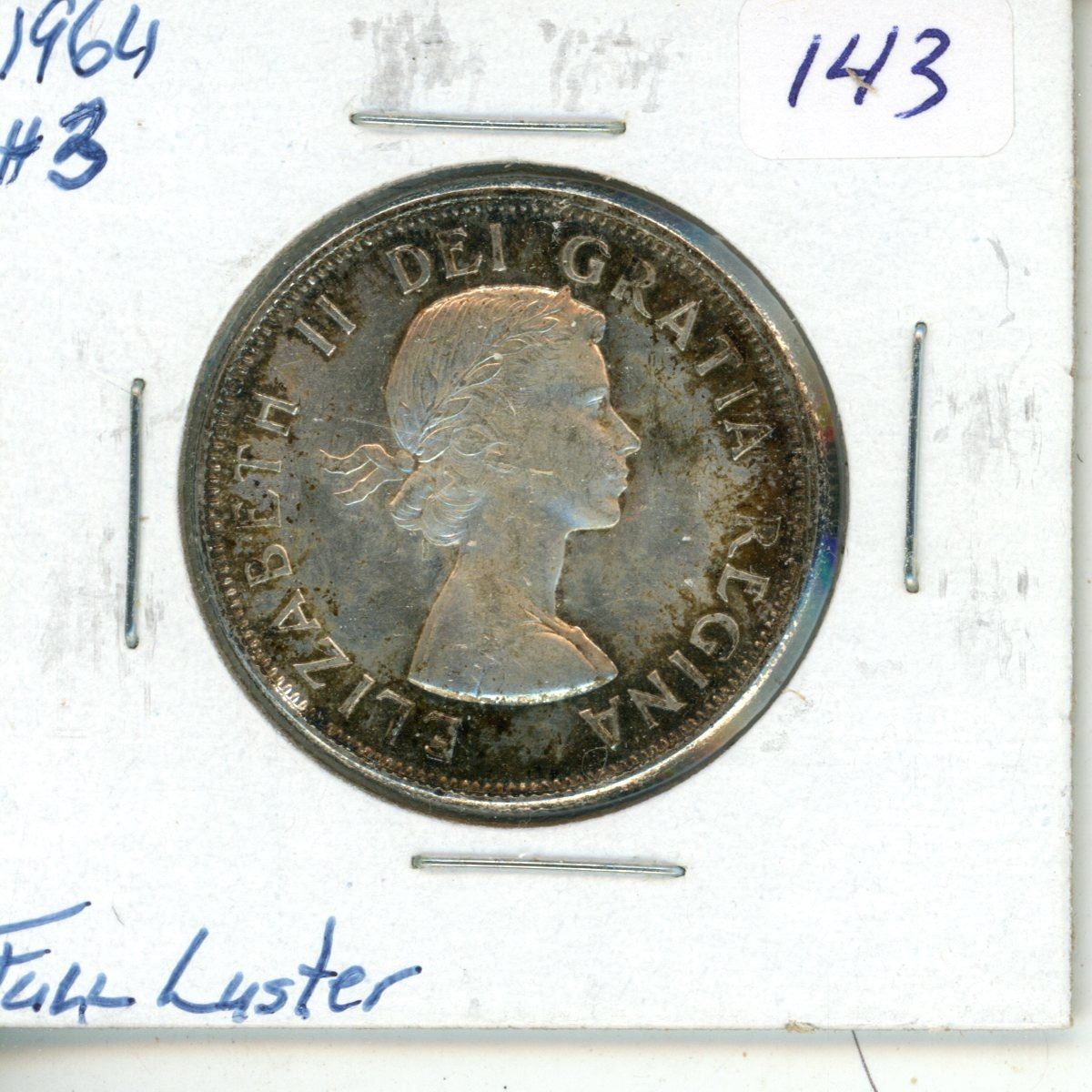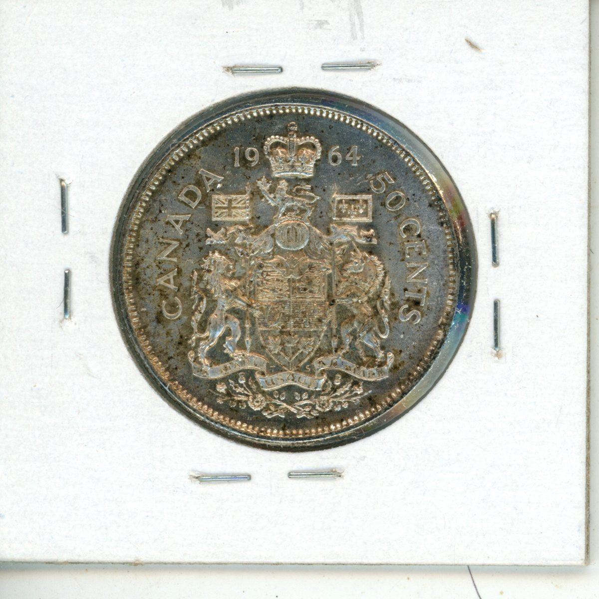 1964 Canadian Silver 50 Cents. MS-63 with Cameo. Nicely Toned.