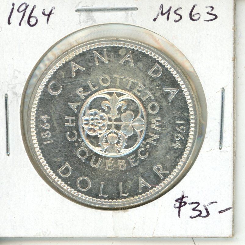1964 Canadian Silver Dollar. MS-63. Bright White.
