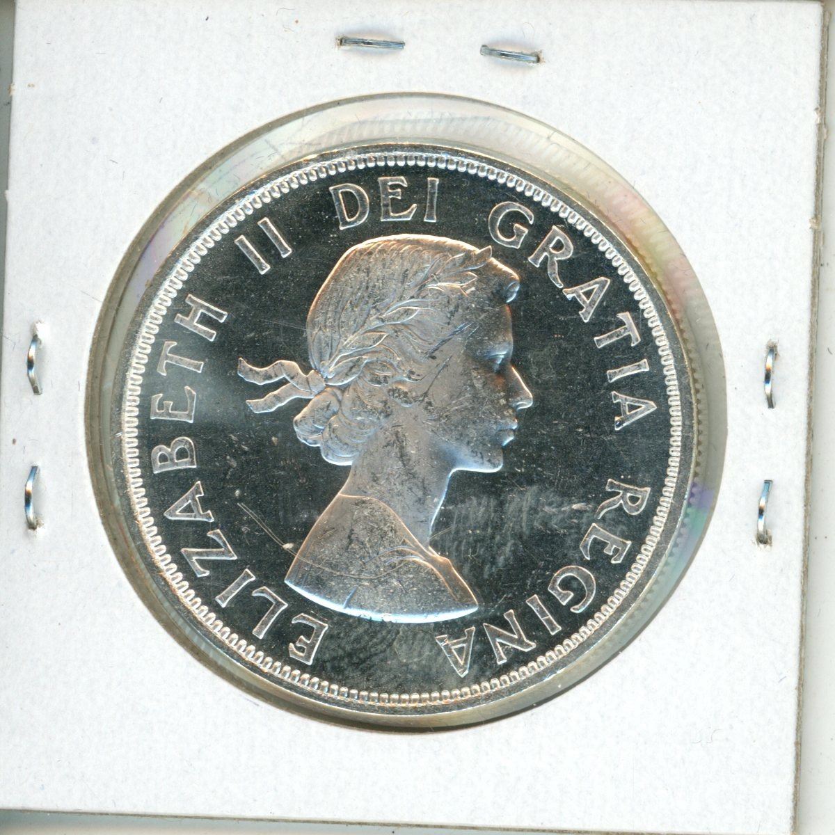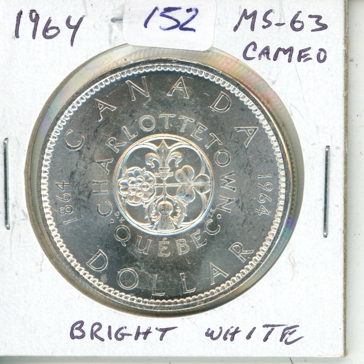 1964 Canadian Silver Dollar. MS-63 with Cameo. Bright White.