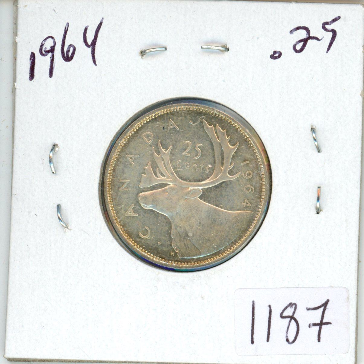 1964 Canadian silver 25 cent coin