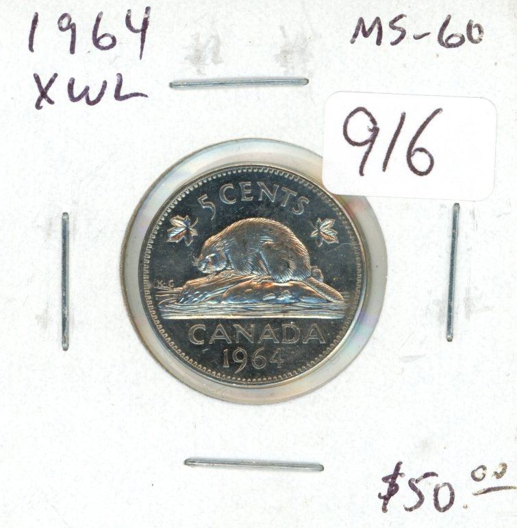 1964 Extra Water Line Nickel 5 Cents. MS-60. Scarce.
