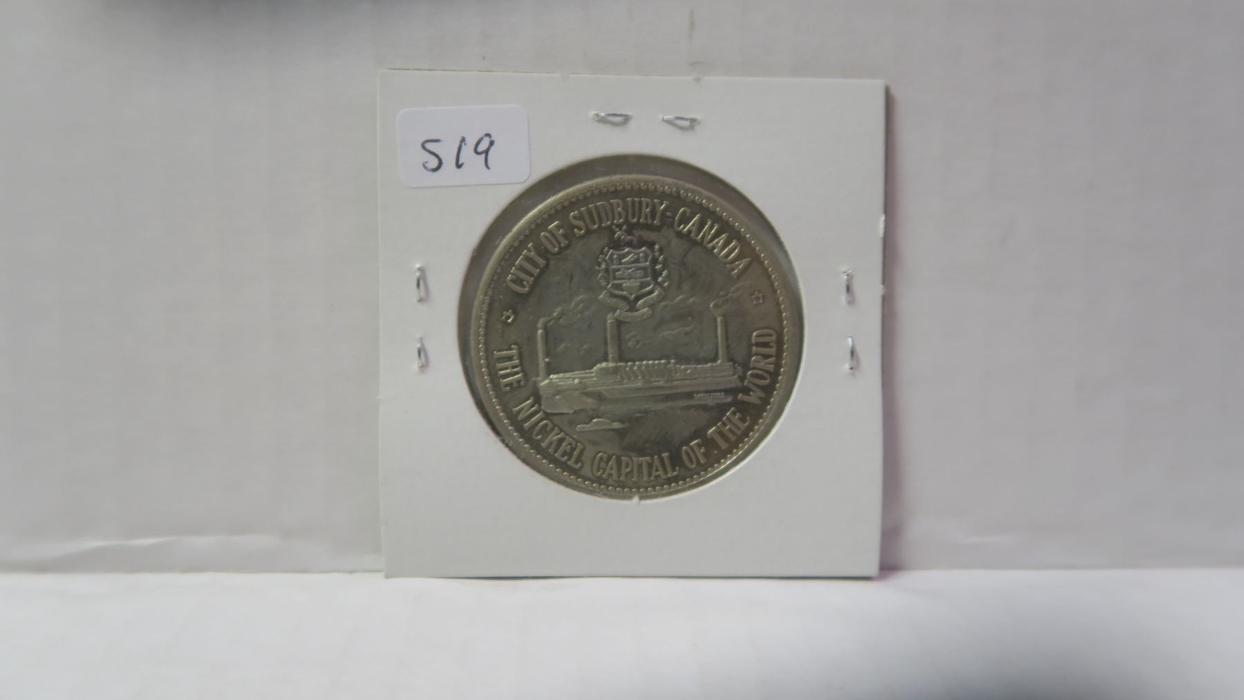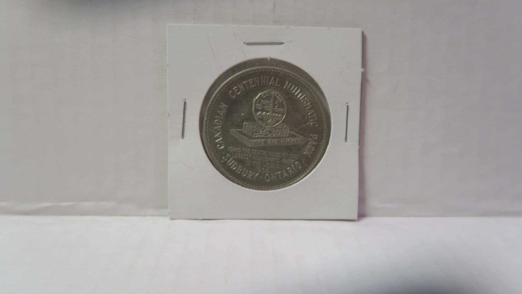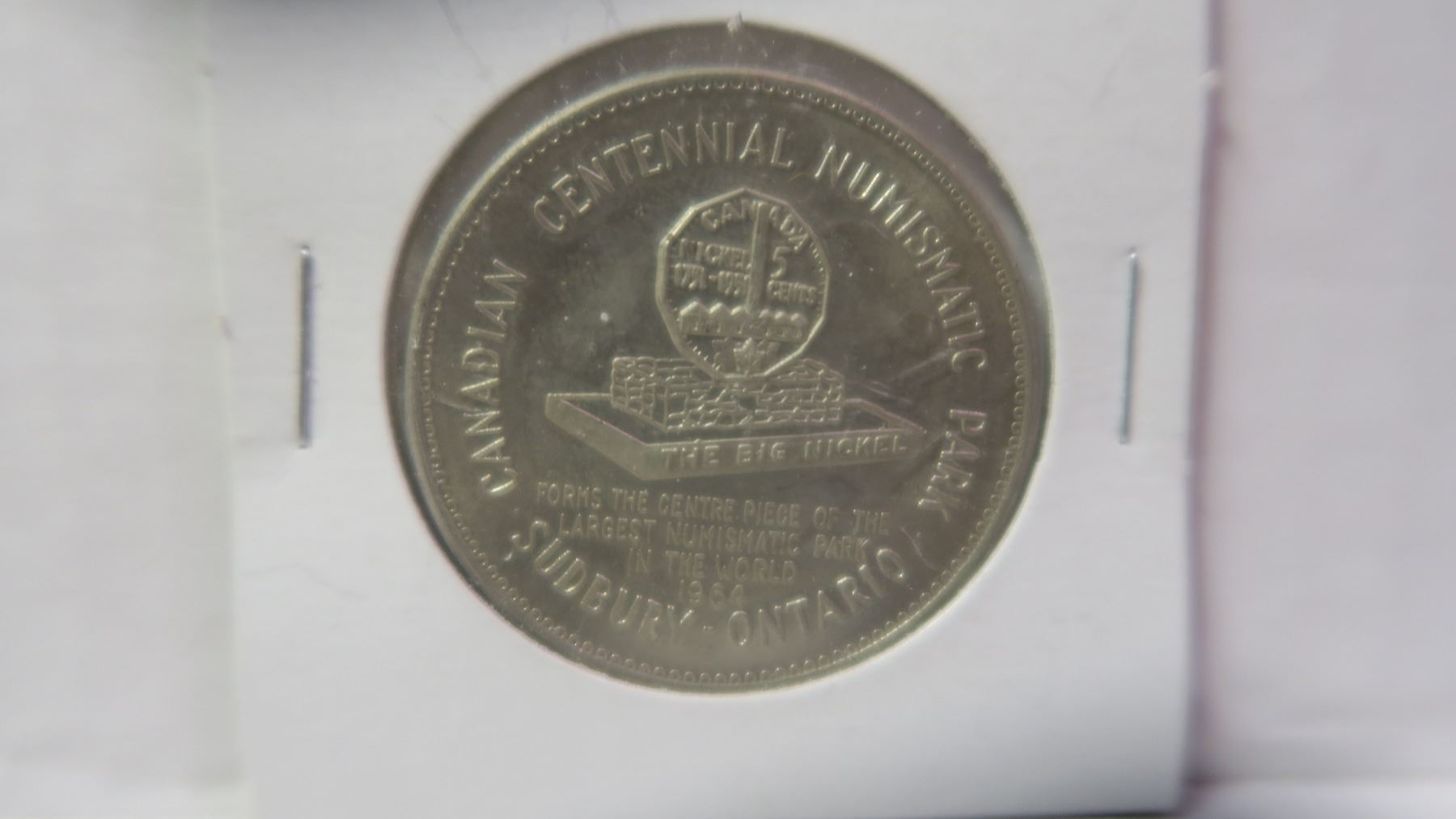 1964 Sudbury, Ontario medal. Large Nickel medal commemorates the Canadian Centennial Numismatic Park.