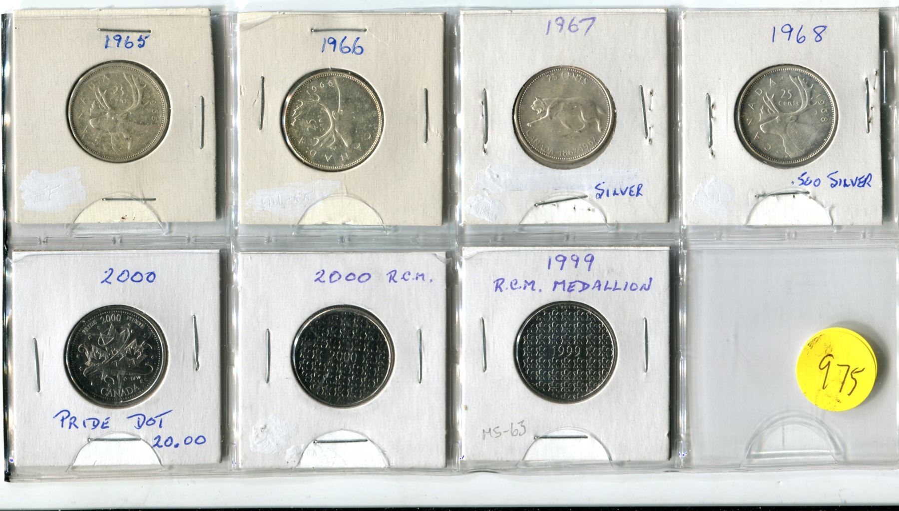 1965, 1966, 1967, 1968 Silver, 20.00 Pride Dot Quarters plus Two Medallions