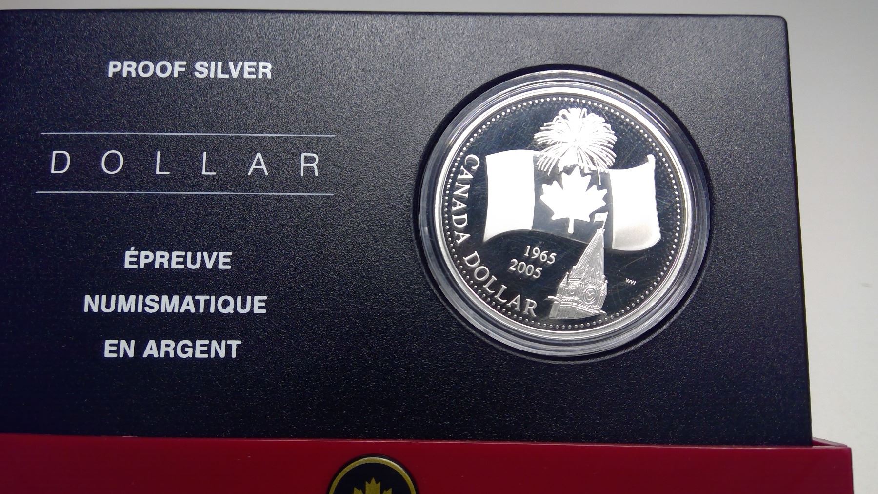 1965-2005 Canada Proof Fine Silver Dollar, 40th Anniversary Canada Flag, COA