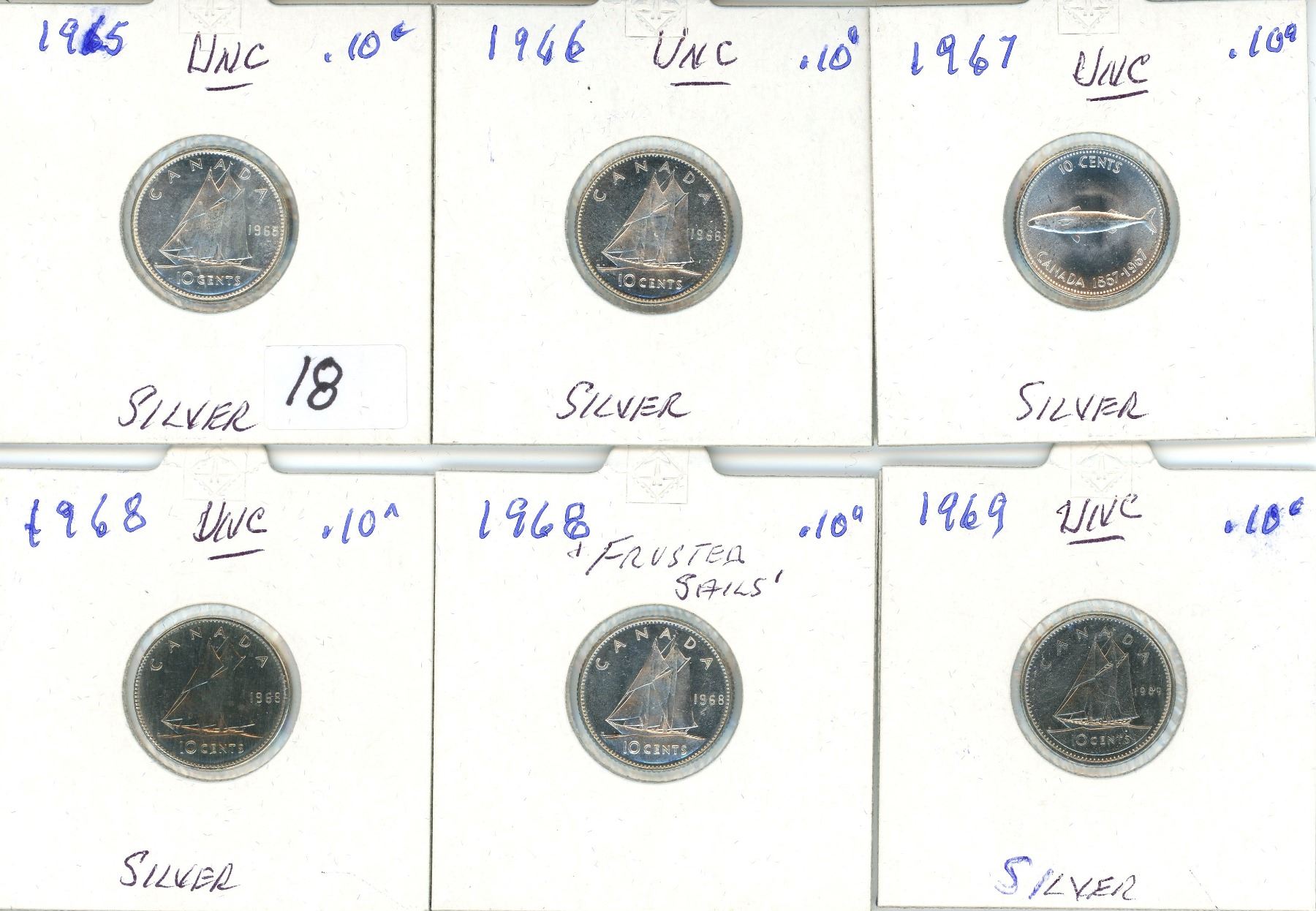 1965, 66, 67, 68, 68, 69 (6) 10¢ Silver Coins