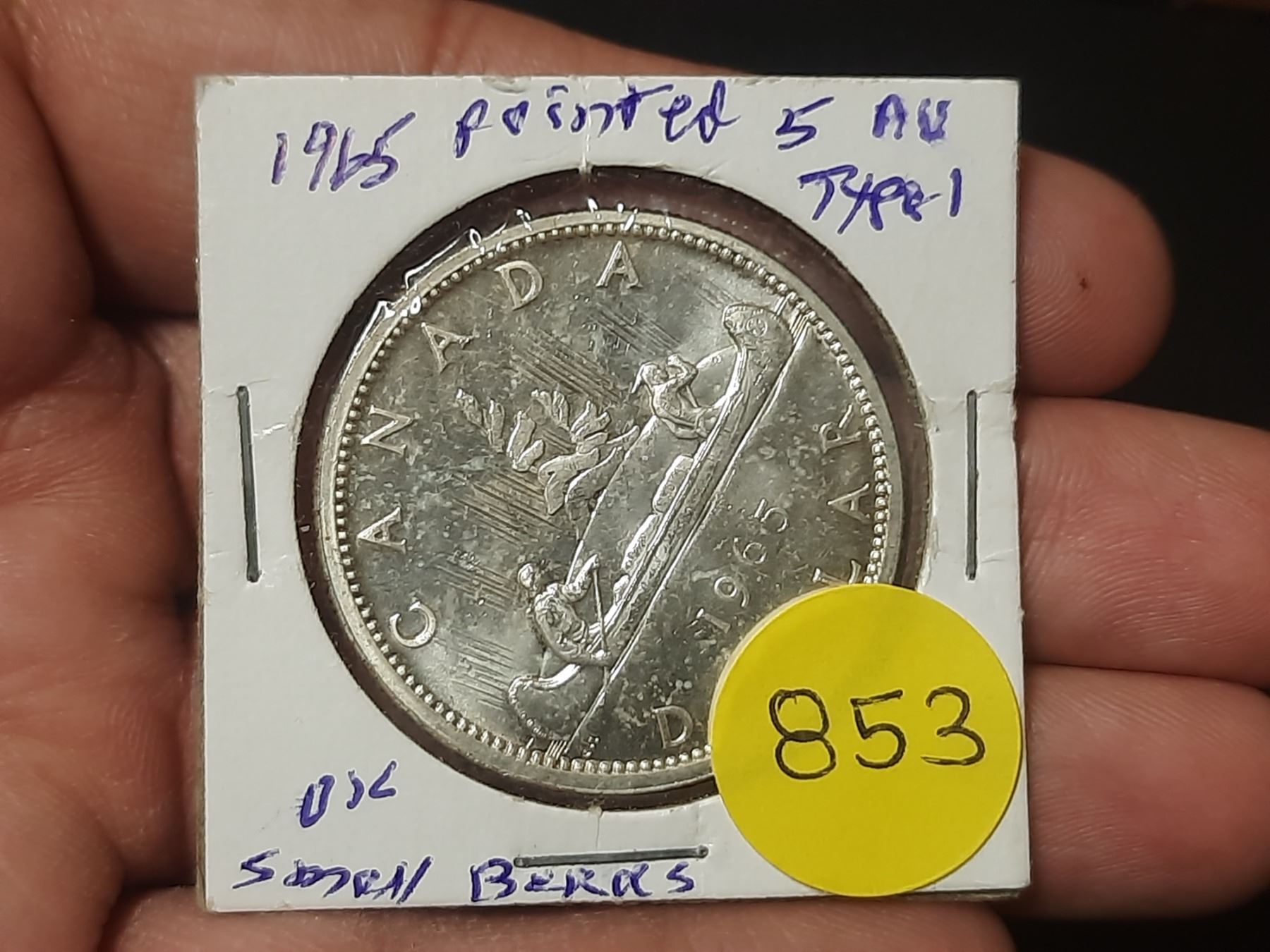 1965 AU Canadian Silver Dollar - Pointed 5, Small Beads