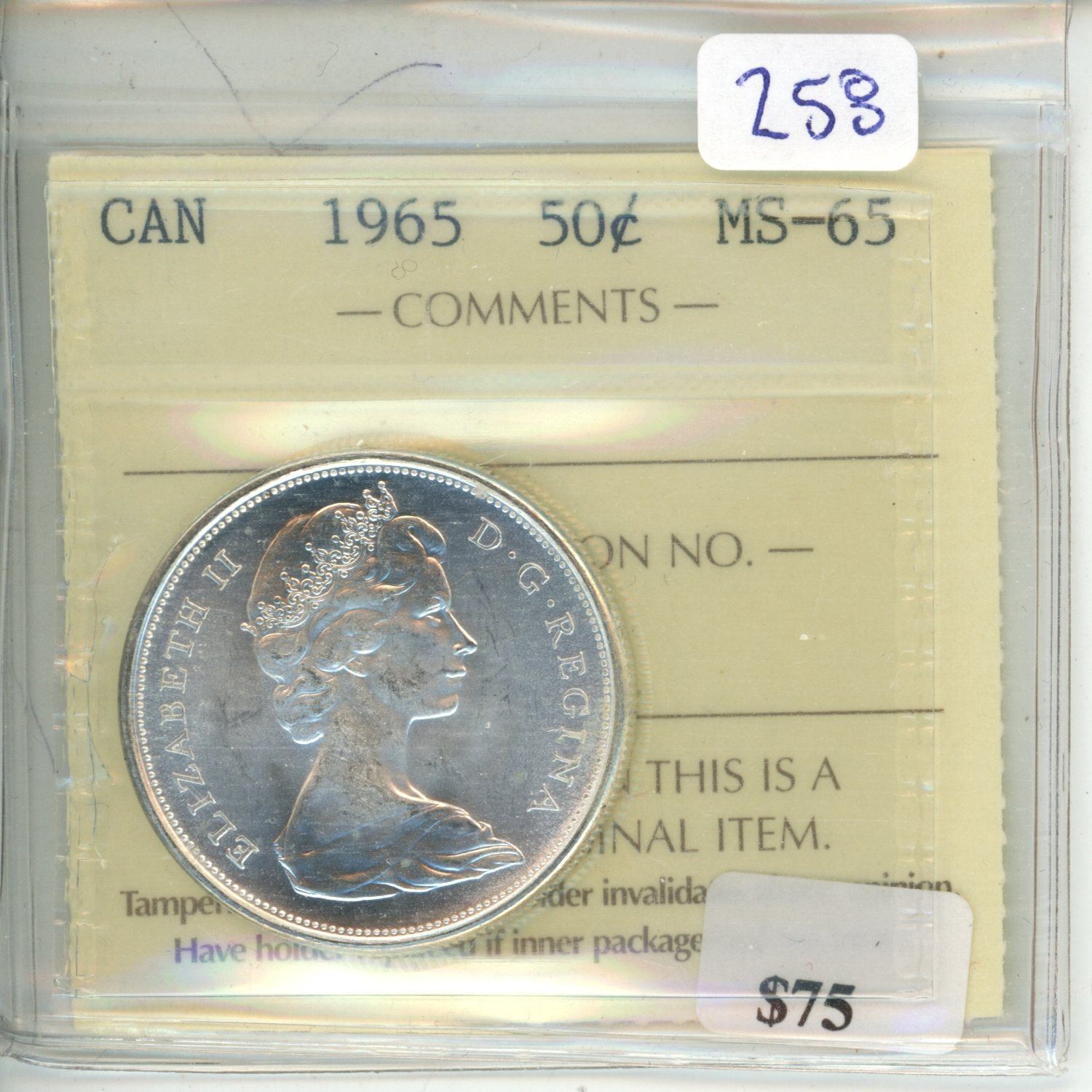 1965 Canadian Silver 50 Cents, ICCS certified & graded MS-65.