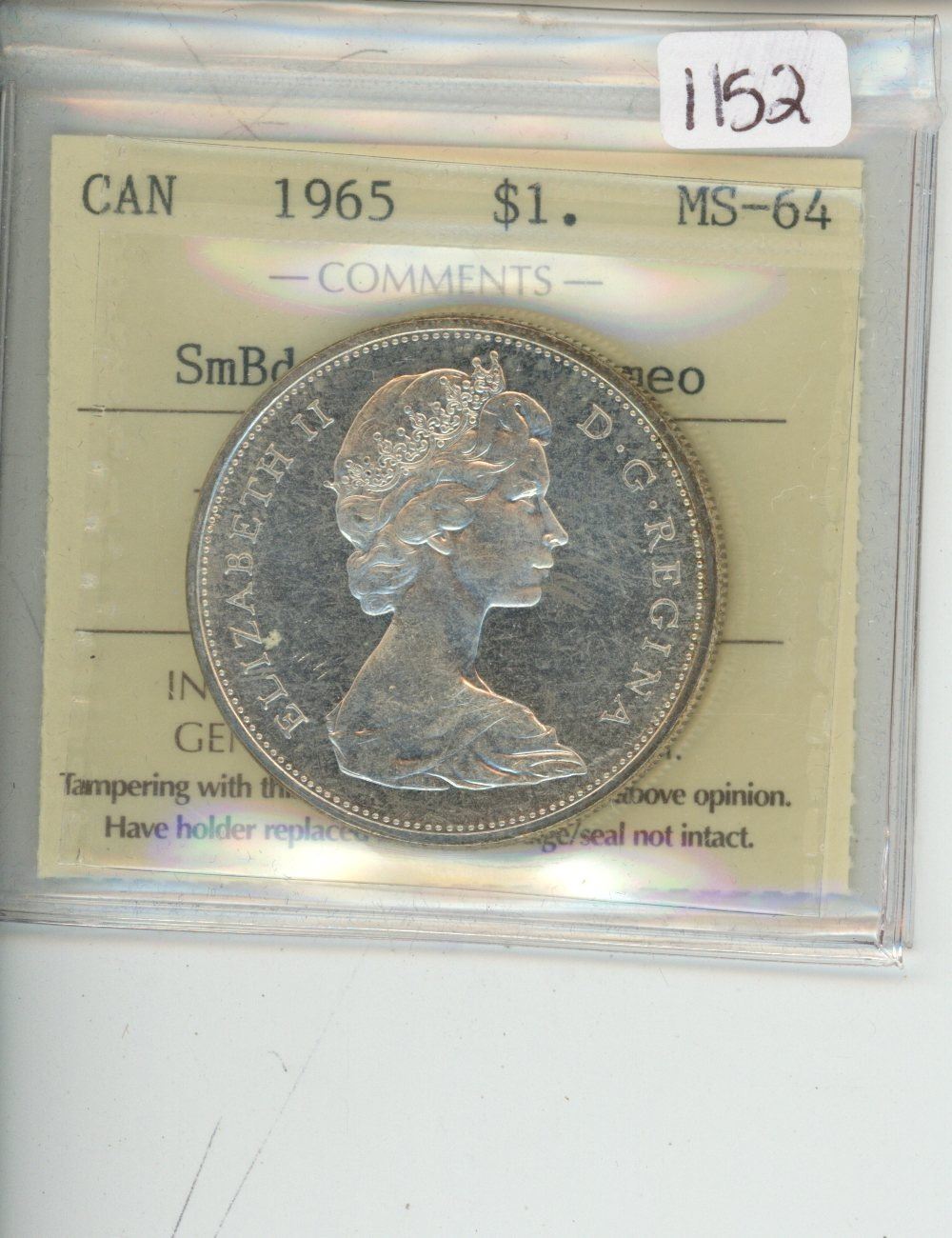 1965 ICCS graded MS-64 1 dollar; Sm Bds Ptd5, Cameo