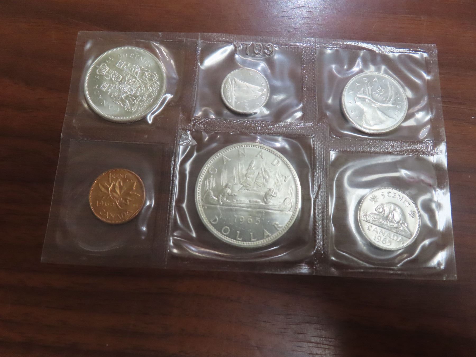 1965 Type II Coins of the Year Club (COTY) Set. Includes Type II Silver Dollar. Coins are carefully selected from Royal Canadian Mint rolls.
