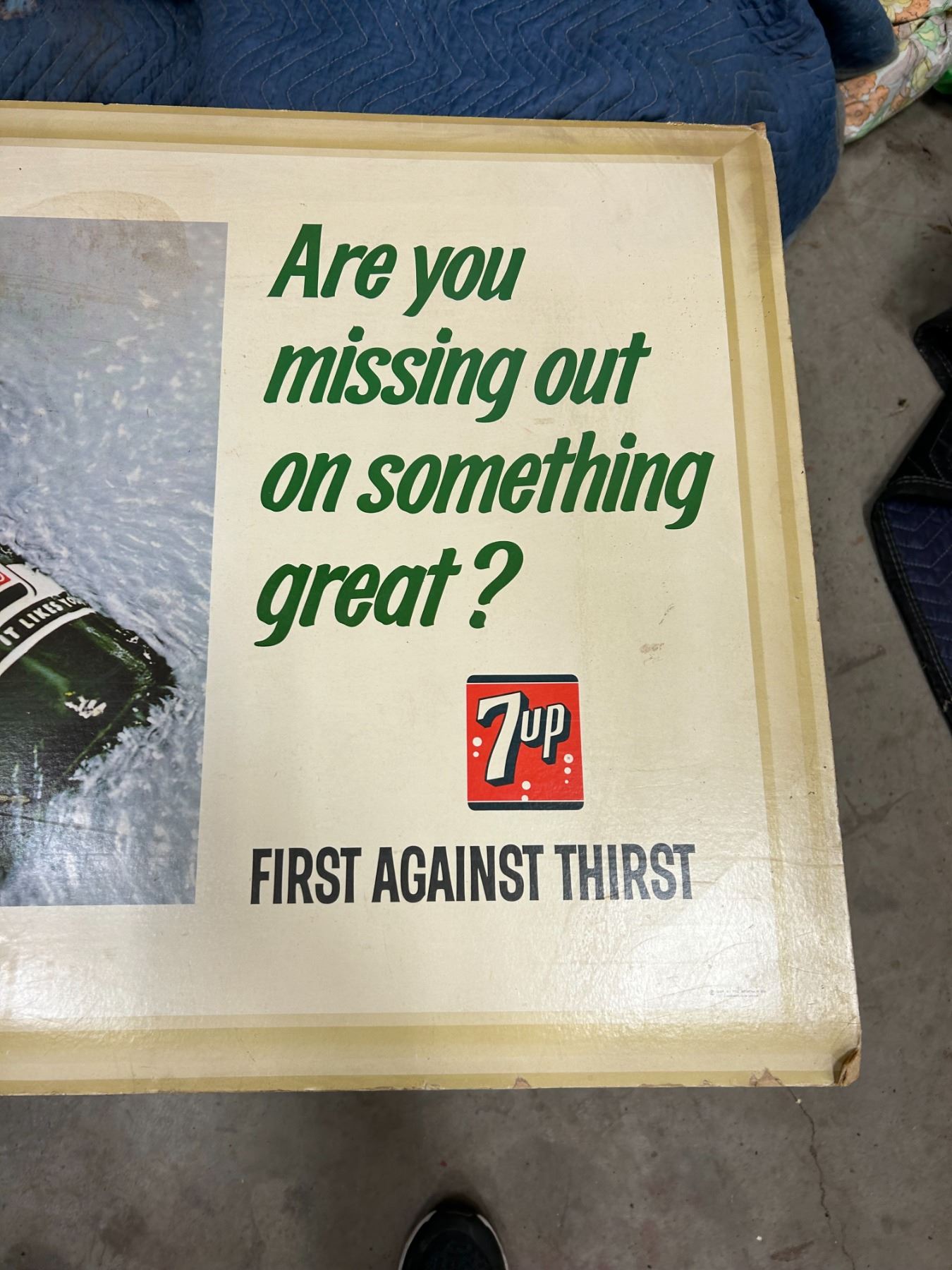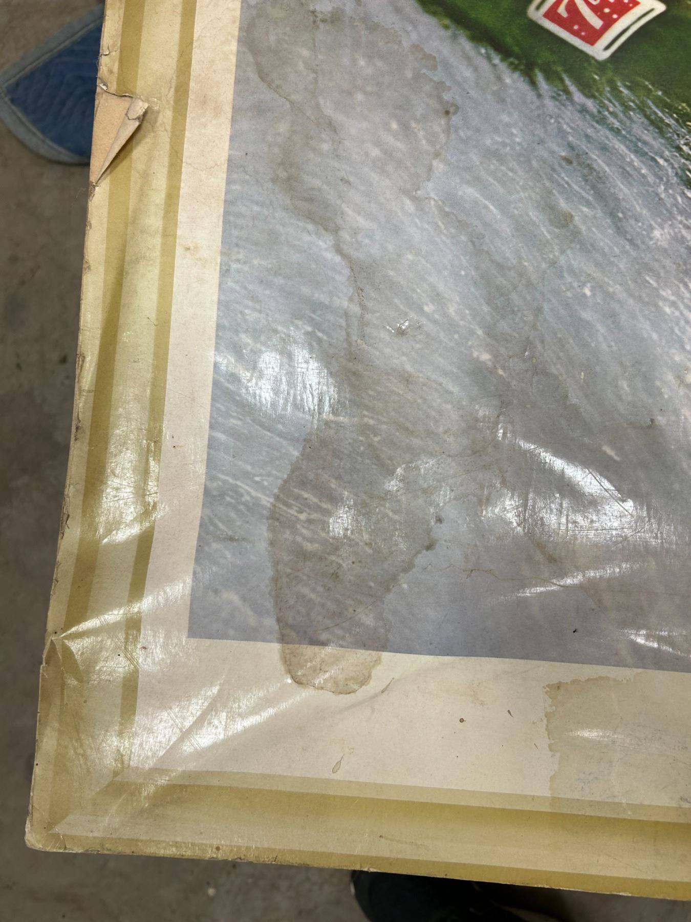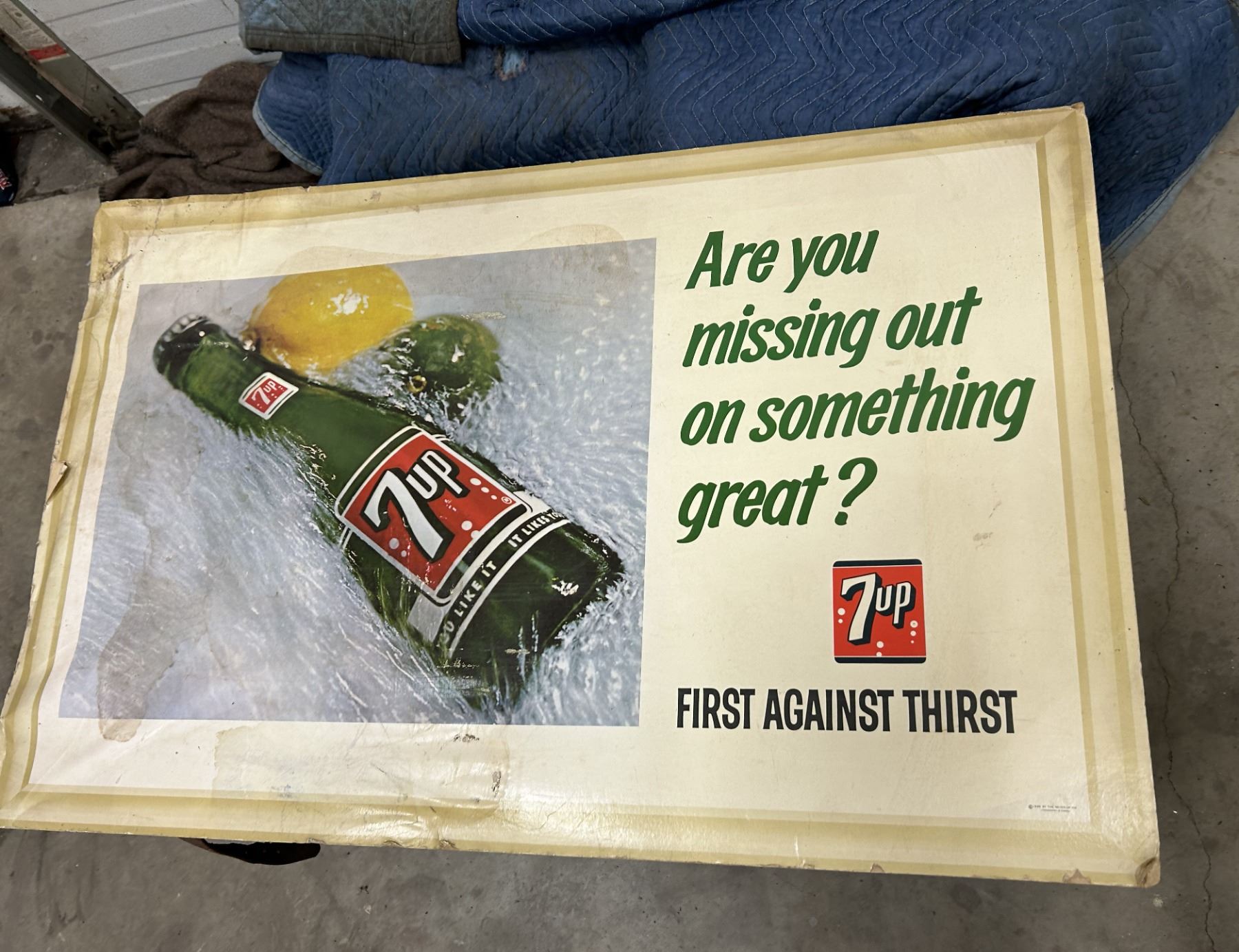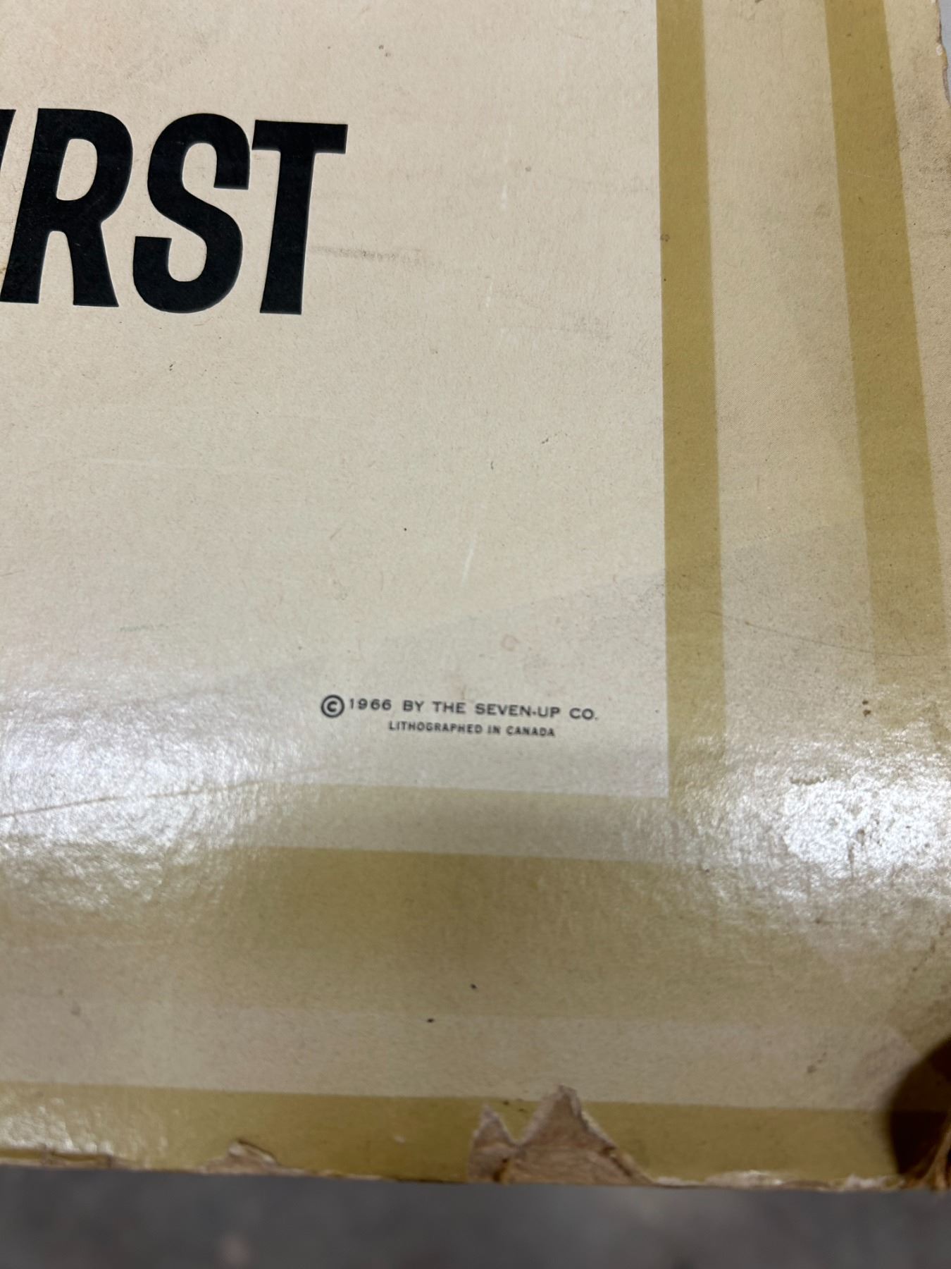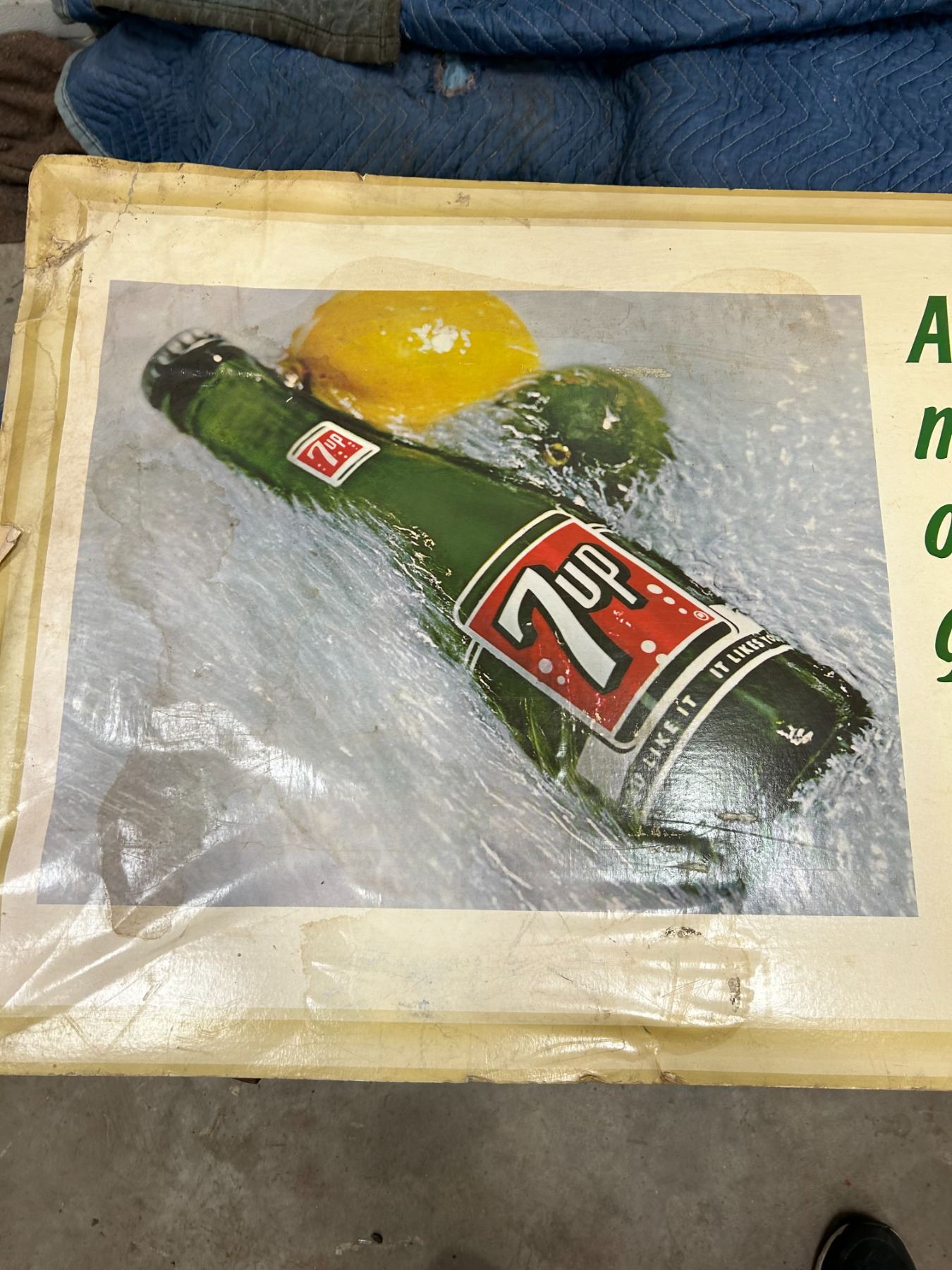 1966 "7up" cardboard sign - has water damage - 36"x24"