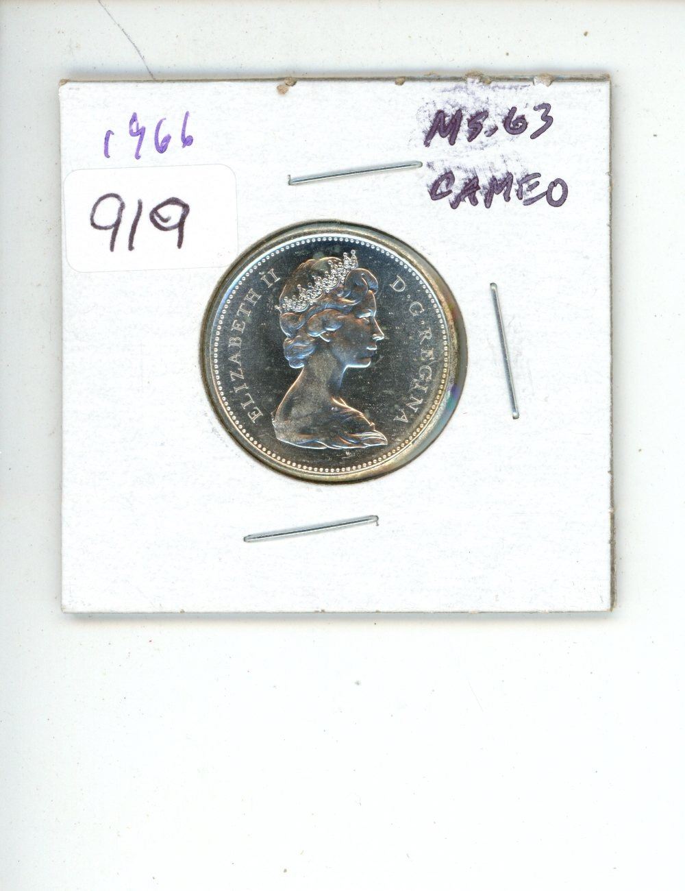1966 Canadian Silver 25 Cents. MS-63. Cameo. Bright White. Nice.