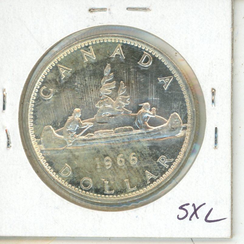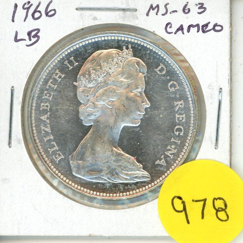 1966 Large Beads Canadian Silver Dollar. MS-63. Cameo.