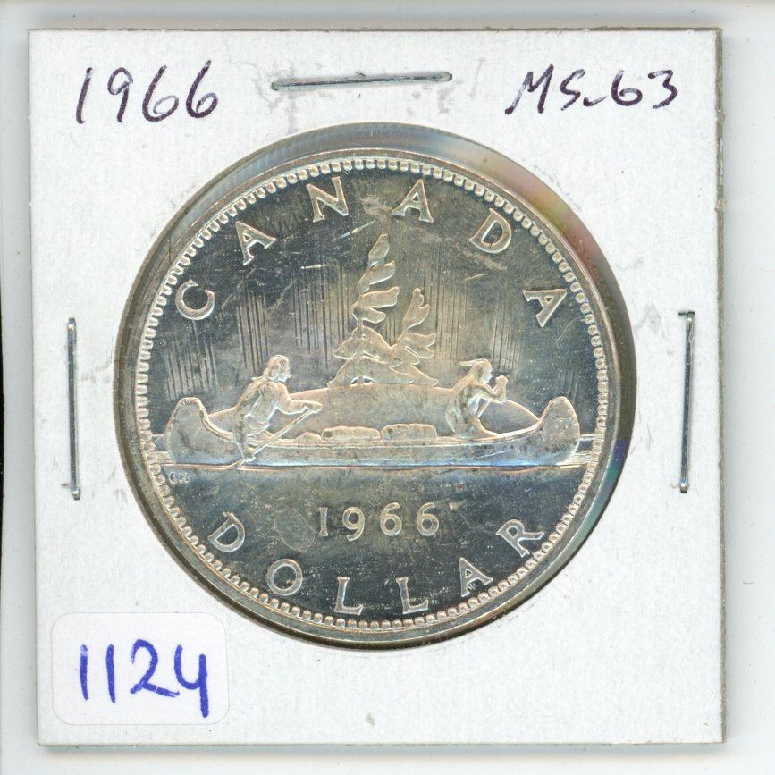 1966 Large Beads Canadian Silver Dollar. MS-63. Lustrous.