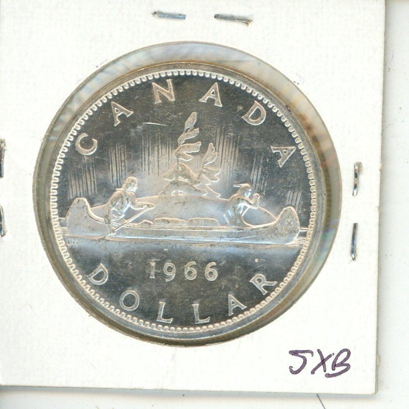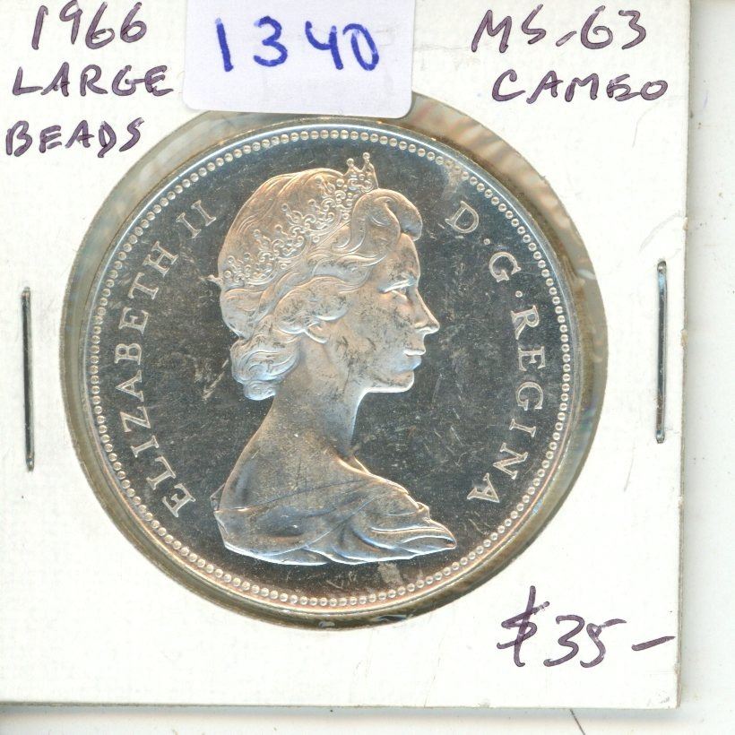 1966 Large Beads Canadian Silver Dollar. MS-63 with Cameo.