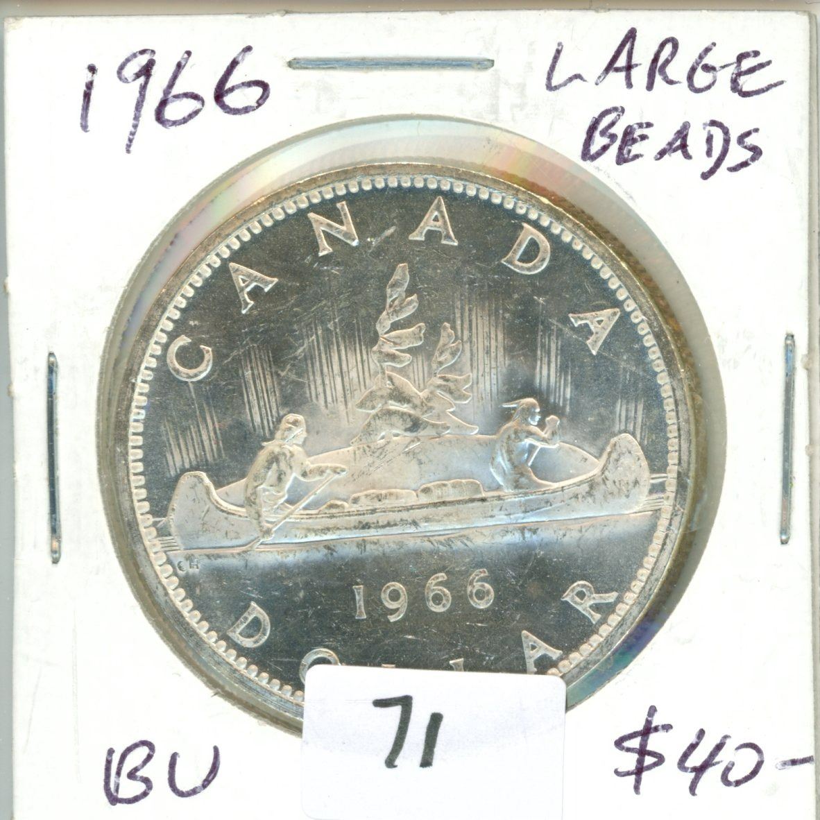 1966 Large Beads Silver Dollar. BU. Cameo.
