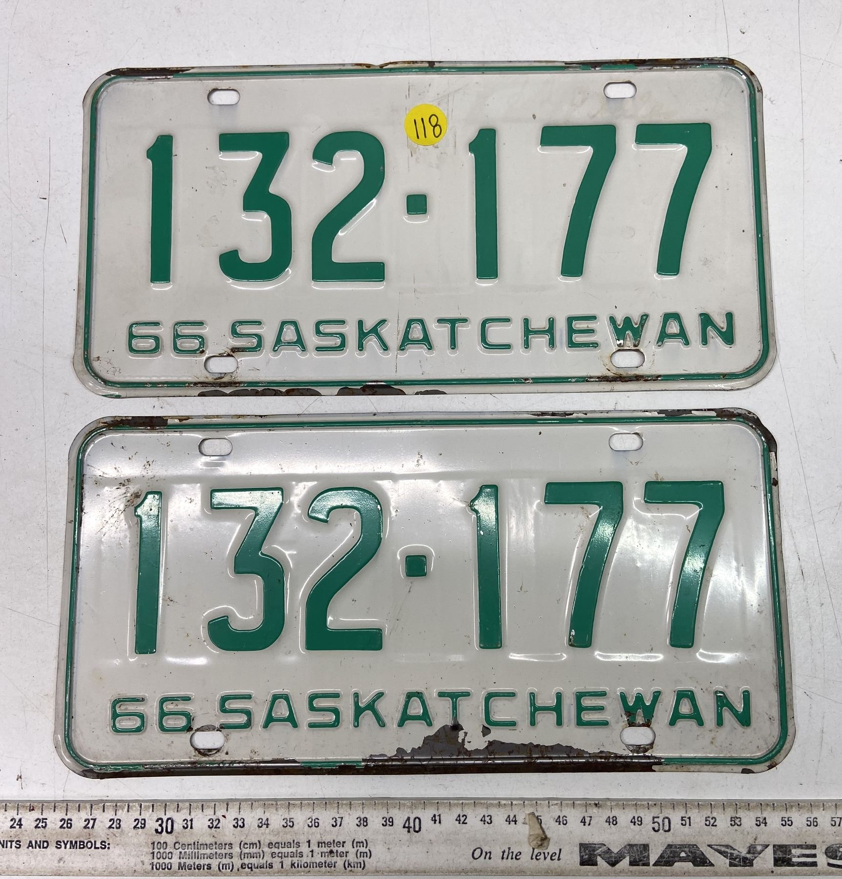 1966 Pair of Saskatchewan Canada Vintage License Plates 132-177