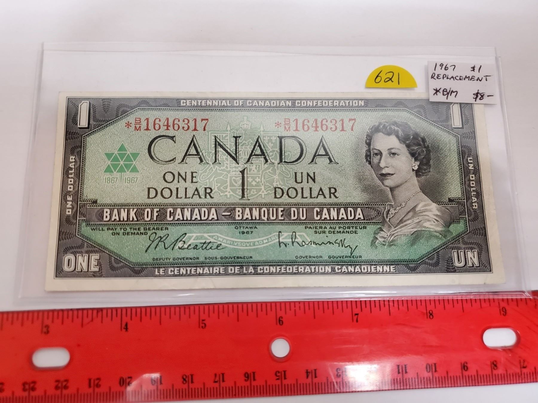 1967 $1 Replacement note. Beattie-Rasminsky signatures. *B/M prefix. VF-30.