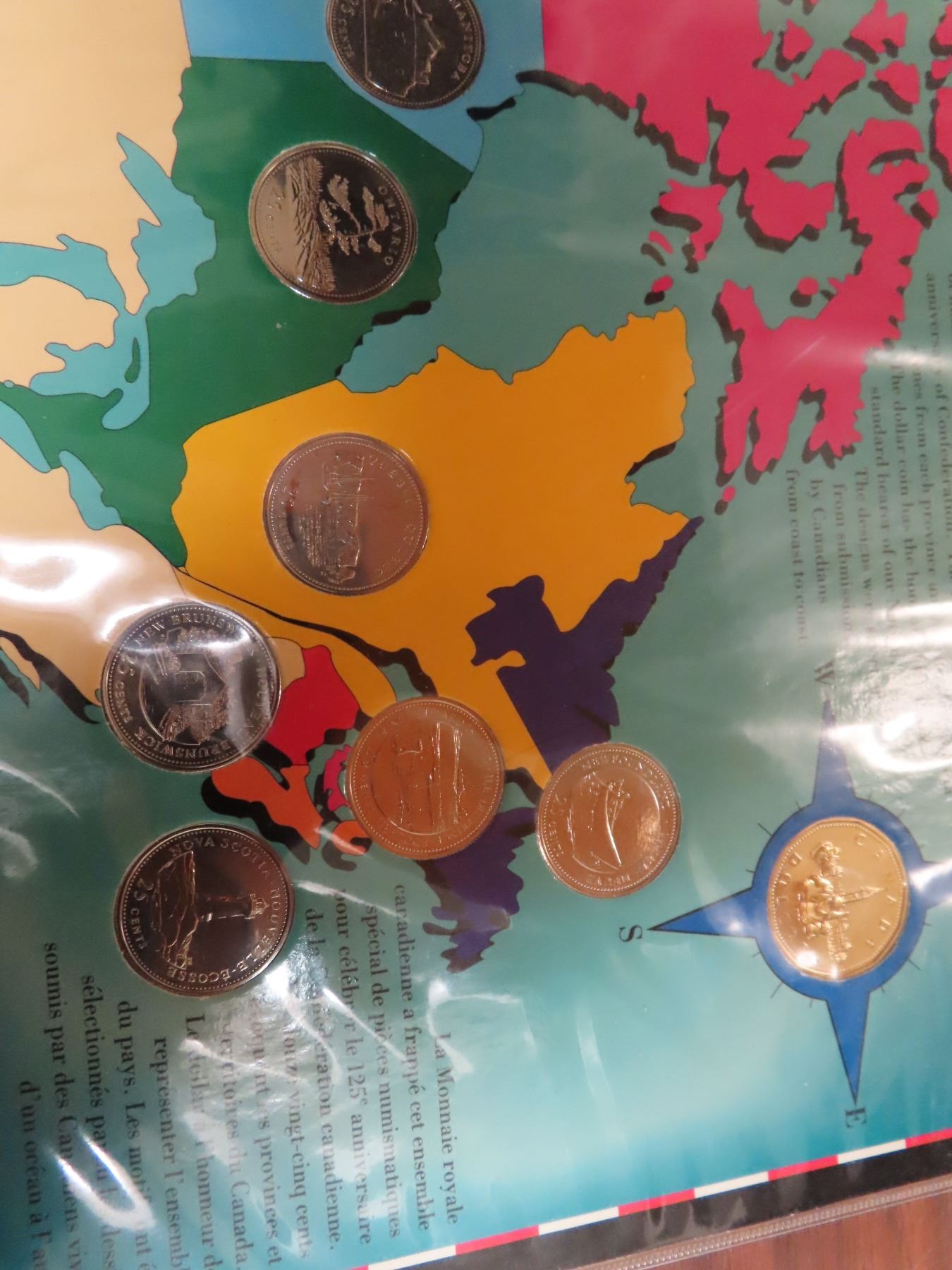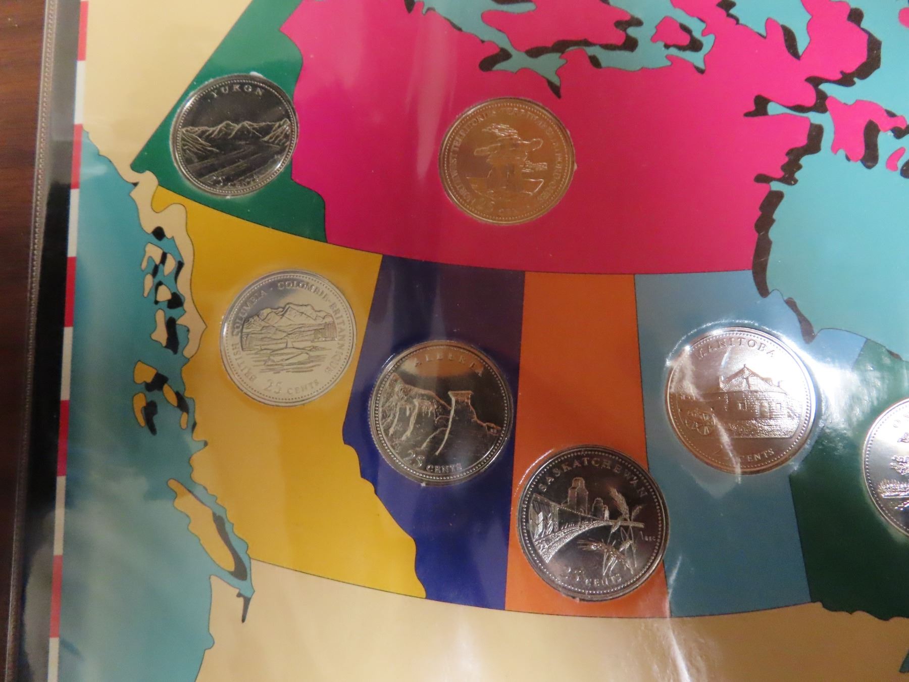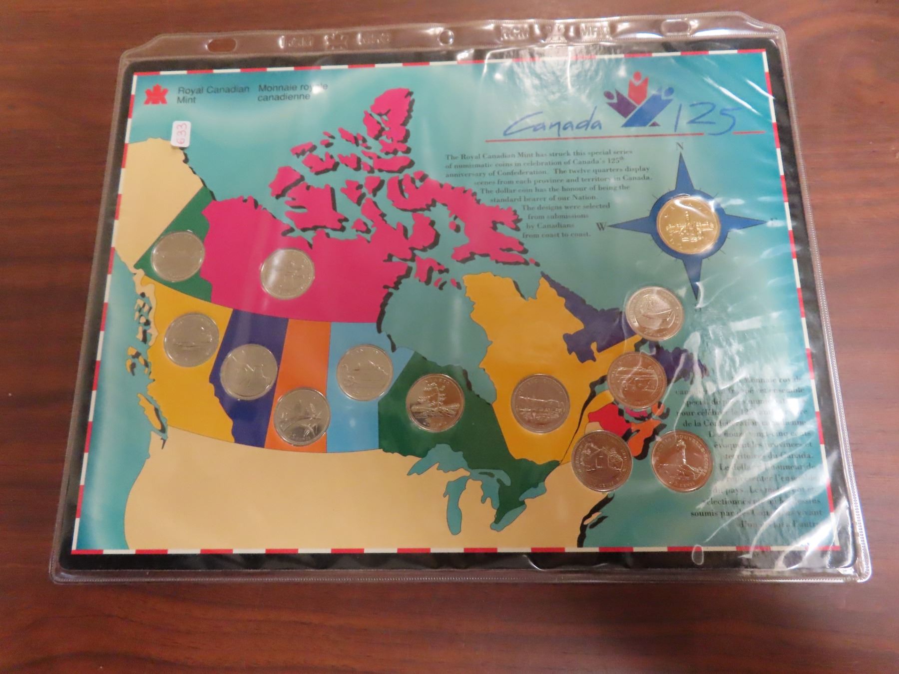 1967 – 1992 Canada 125 25 Cents Collection. One for each province & territory, plus one Special Loonie that depicts the Parliament Buildings. Housed in its original Royal Canadian Mint case of issue.