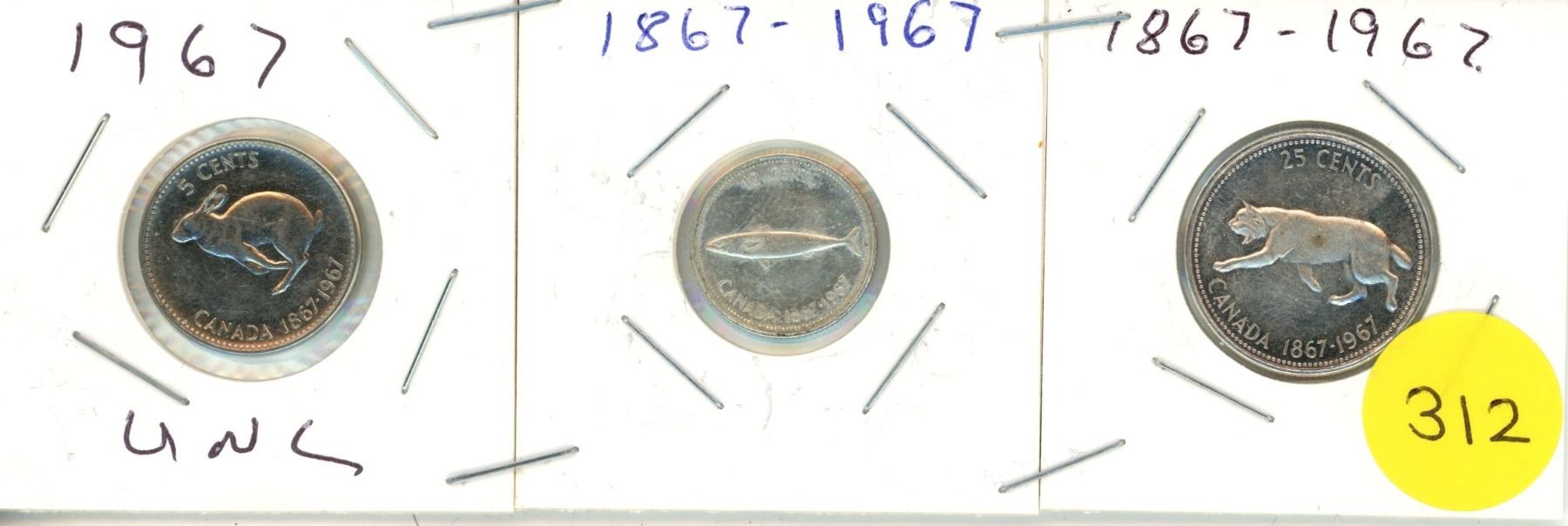 1967 3-CANADIAN CENTENIAL NICKLE,DIME & QUARTER