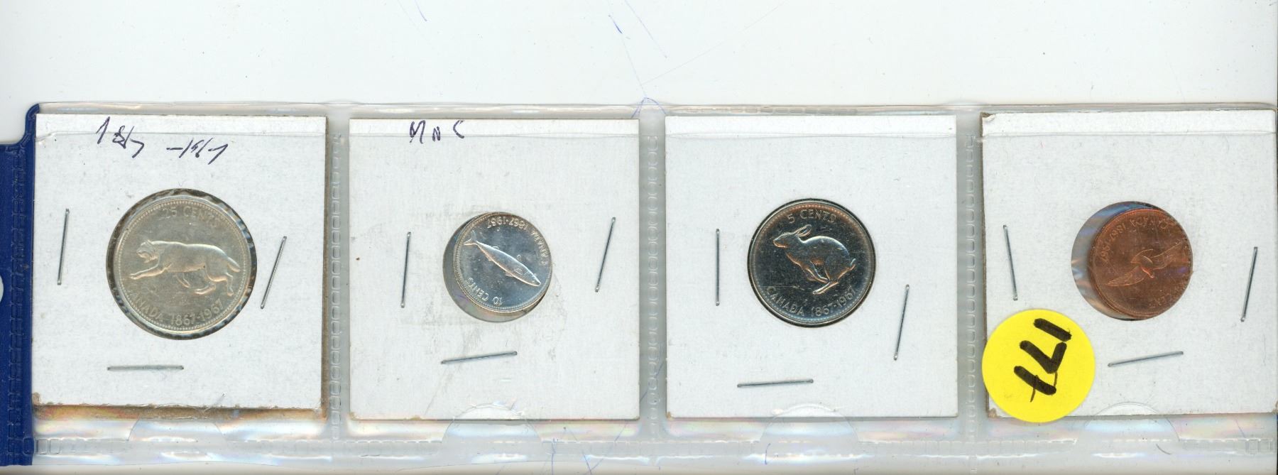 1967 (4) “100 years” Canada Commemorative Coins (Dime and Quarter contains Silver)