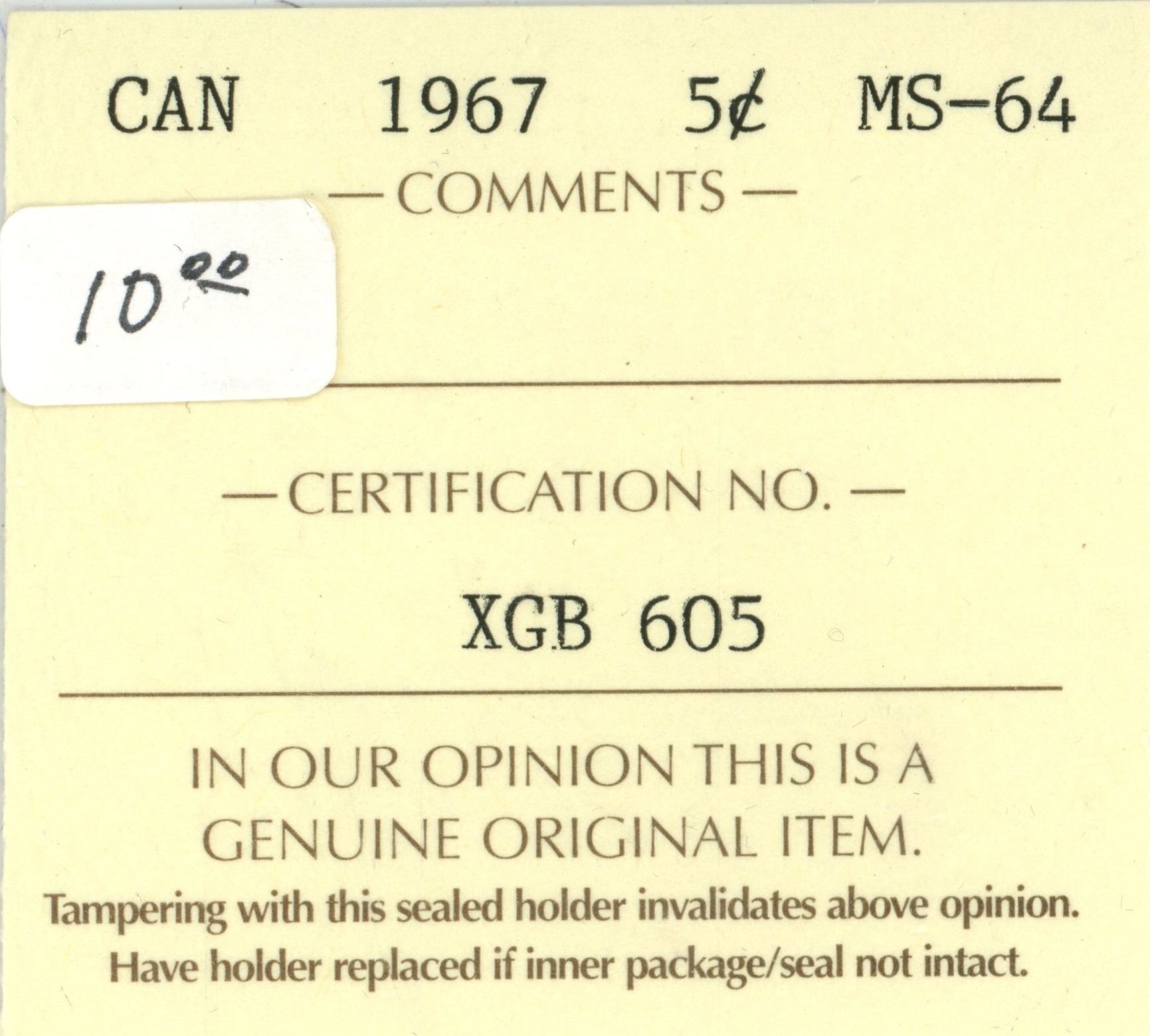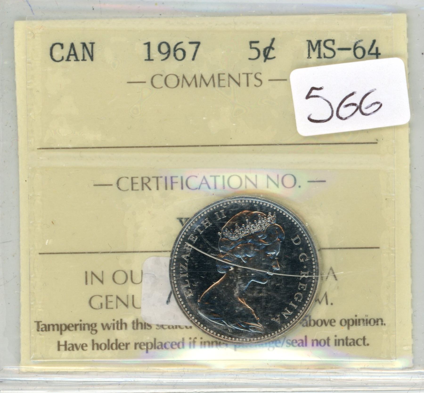 1967 5 Cent Coin MS 64