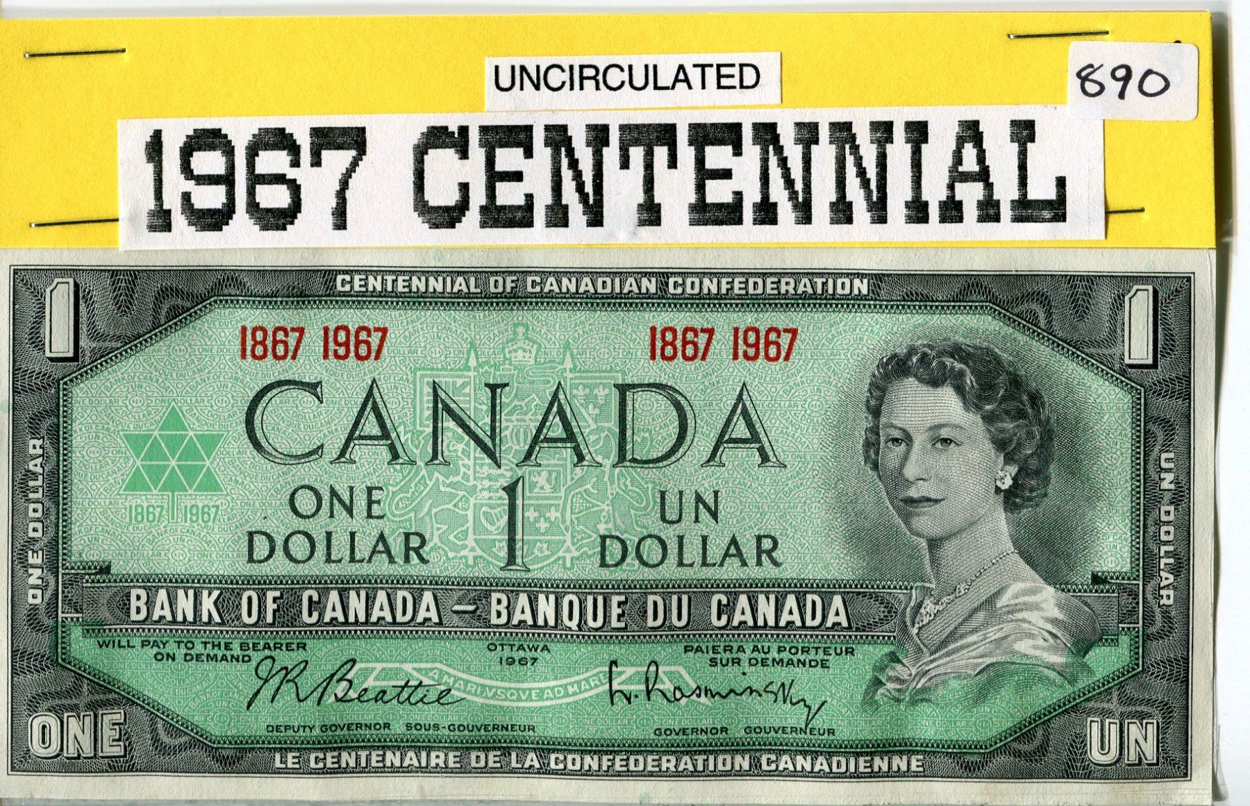 1967 CANADIAN $1.00 BANK NOTE UNCIRCULATED