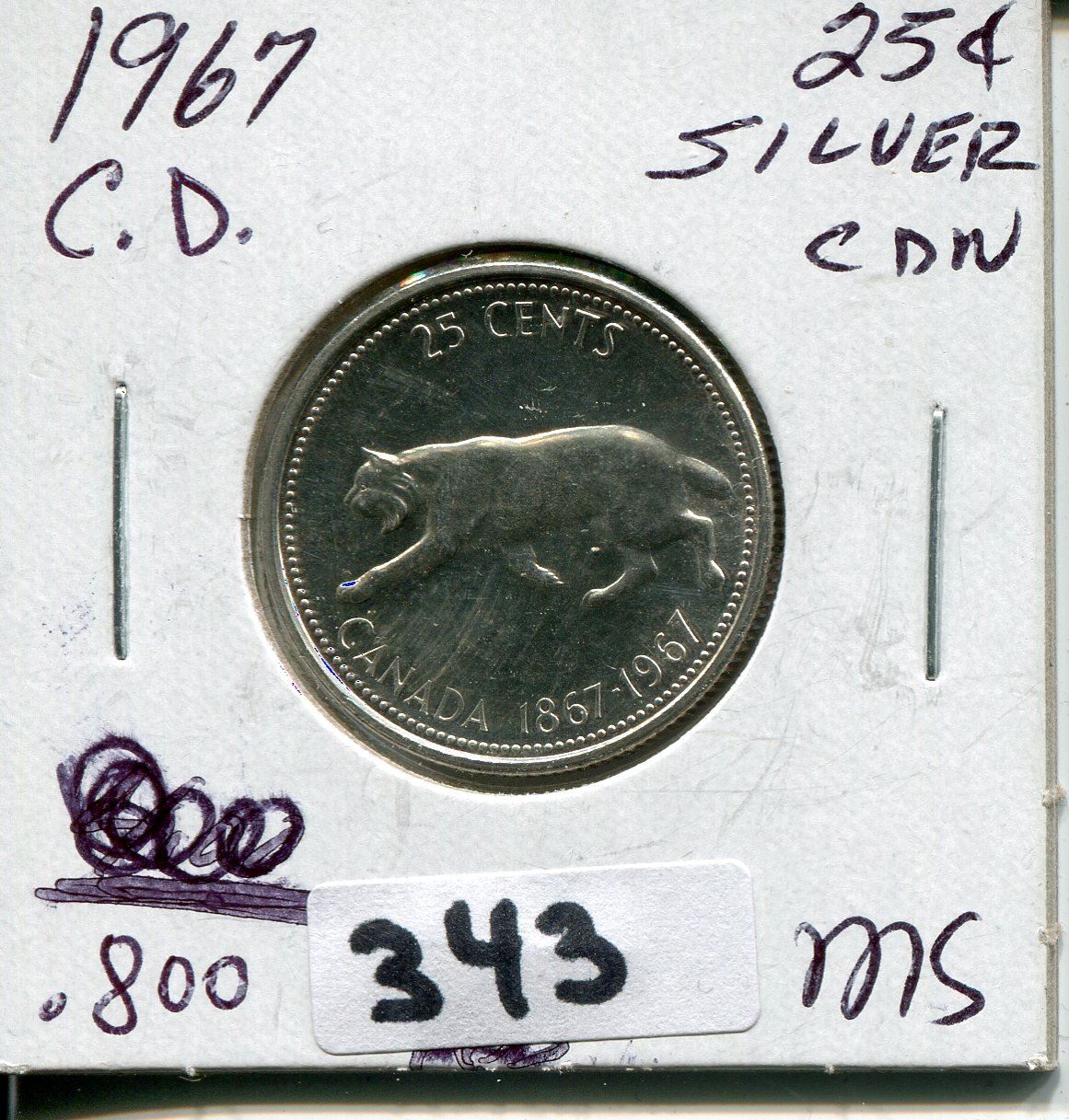1967 CNDN CONFEDERATION SILVER QUARTER QUEEN ROTATED 15°