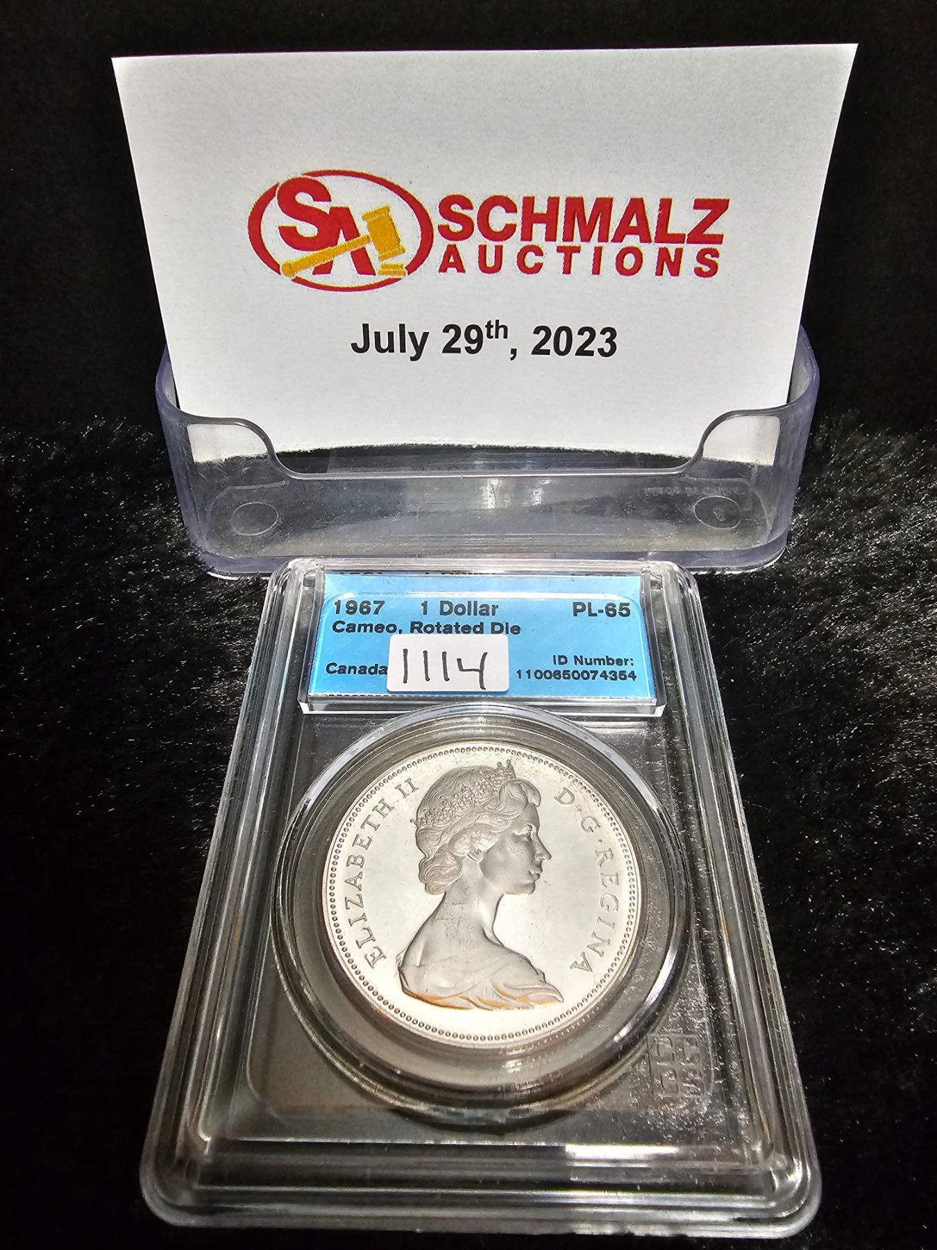 1967 Canada $1.00, Cameo, Rotated Die CCCS graded PL-65