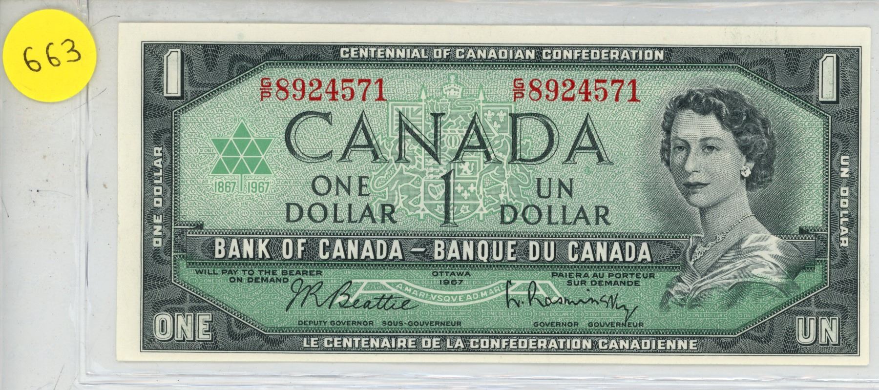 1967 Canada $1, Beattie/Rasminsky (#G/P 8924571)