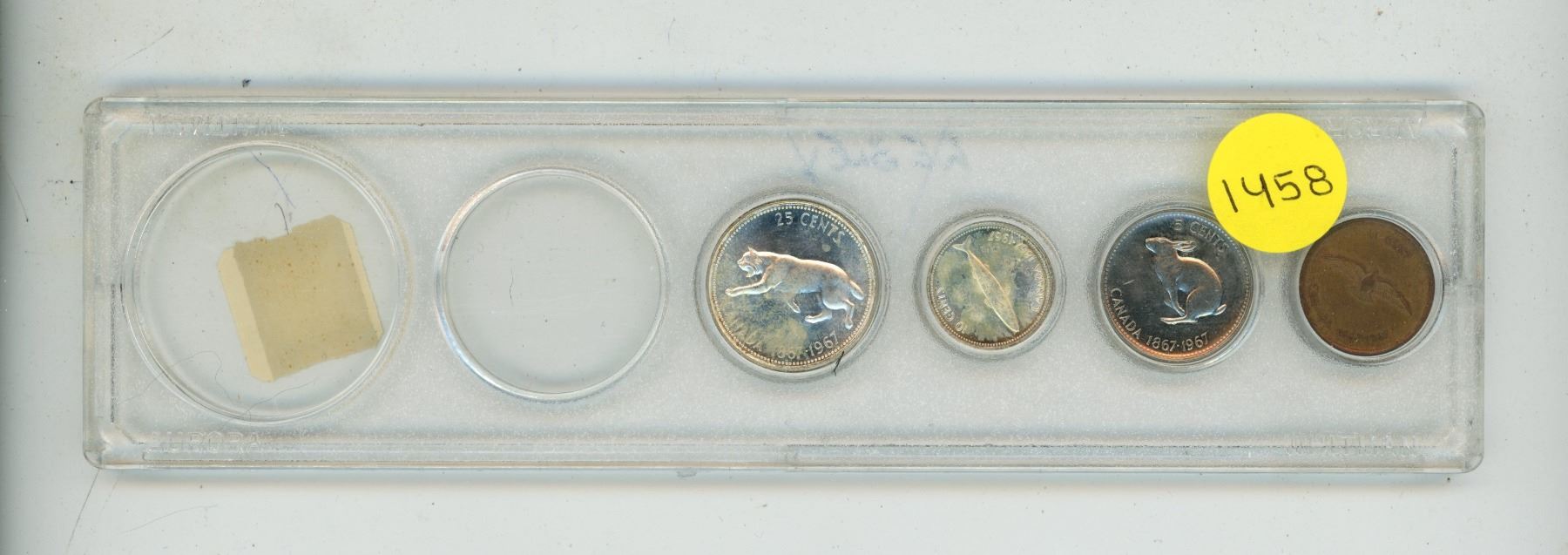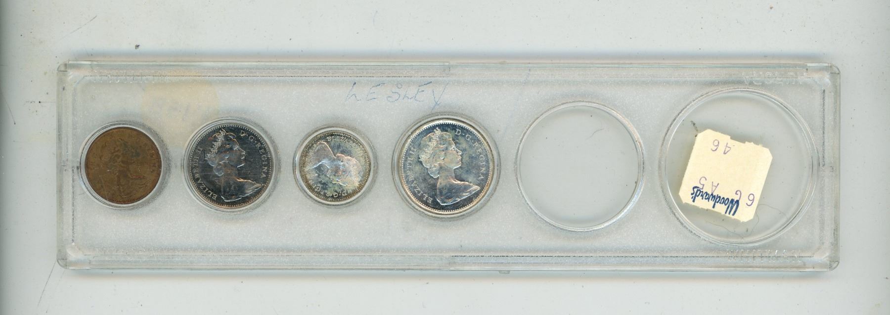 1967 Canada Silver 25 Cents , 10 Cents and 5 , 1 Cents in a plastic case.