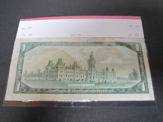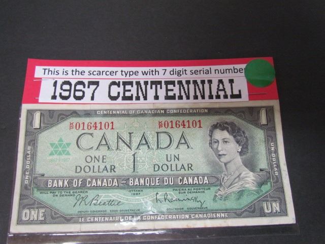 1967 Canadian $1.00 banknote-Centennial Year Issue-This is the Scarcer type with 7 digit Serial #