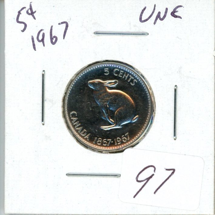 1967 Canadian 5¢ unc