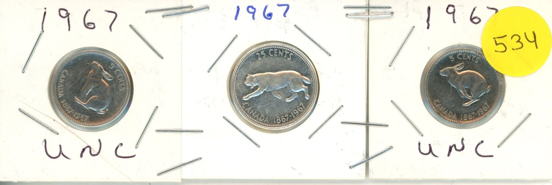 1967 Canadian Centenial Coins,2-Nickles & 1 Quarter
