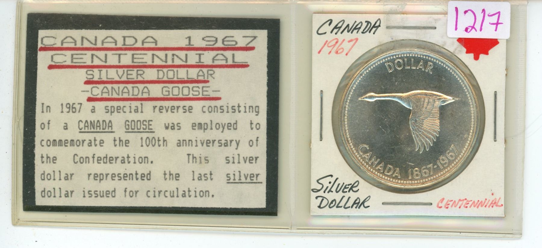 1967 Canadian Centennial "Goose" silver dollar