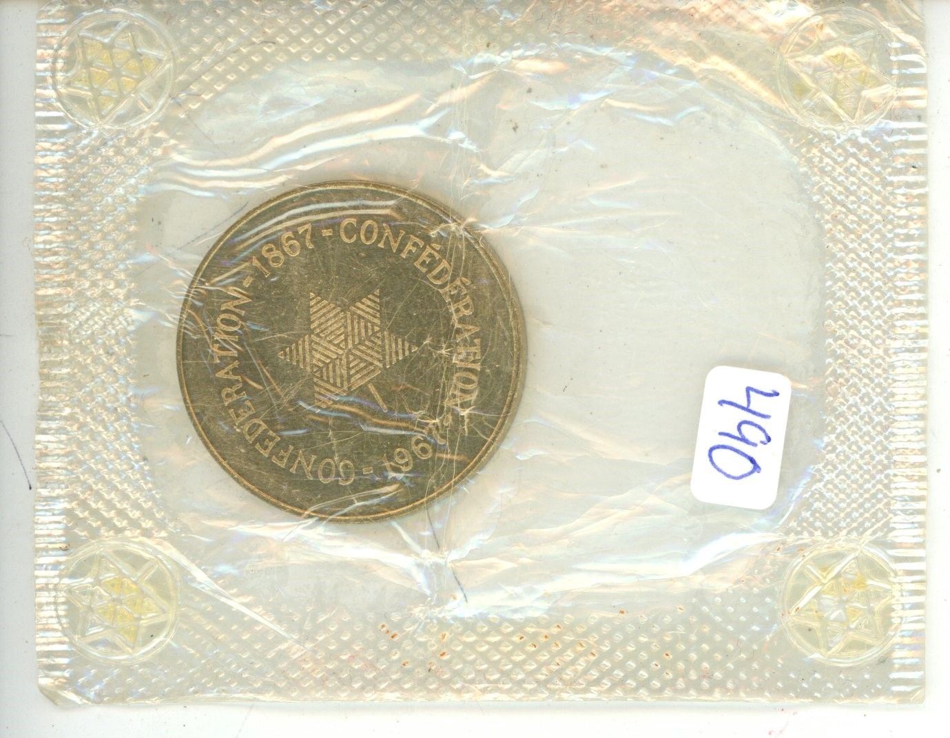 1967 Canadian Centennial brass medal. Housed in its unopened original RCM plastic packaging.