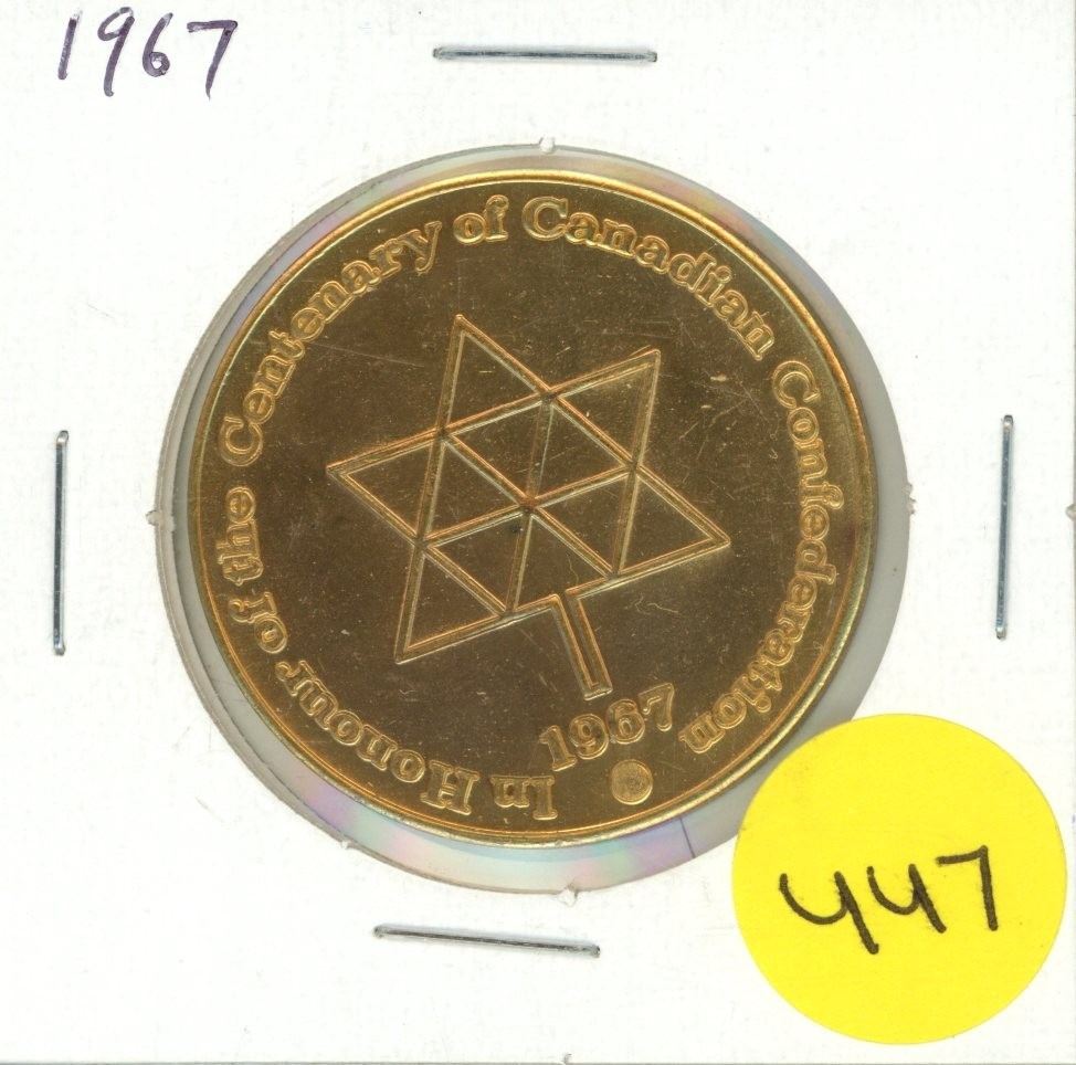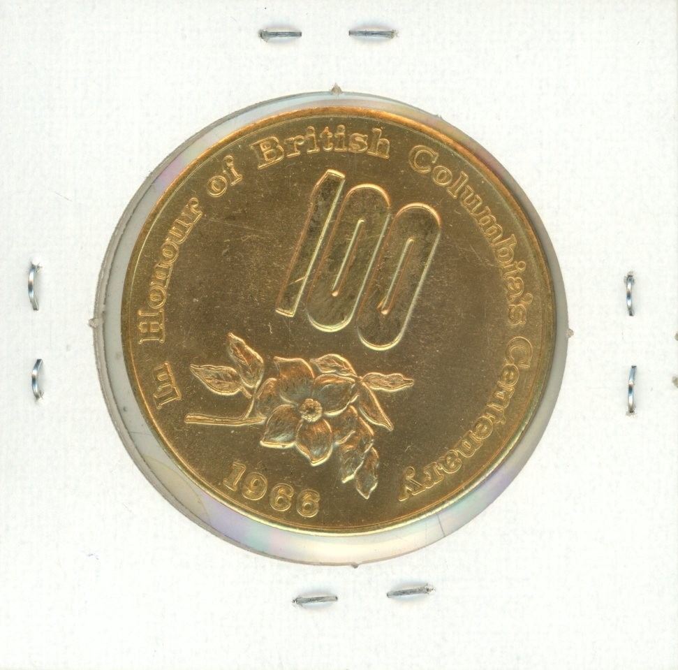 1967 Canadian Centennial brass medal issued by British Columbia.