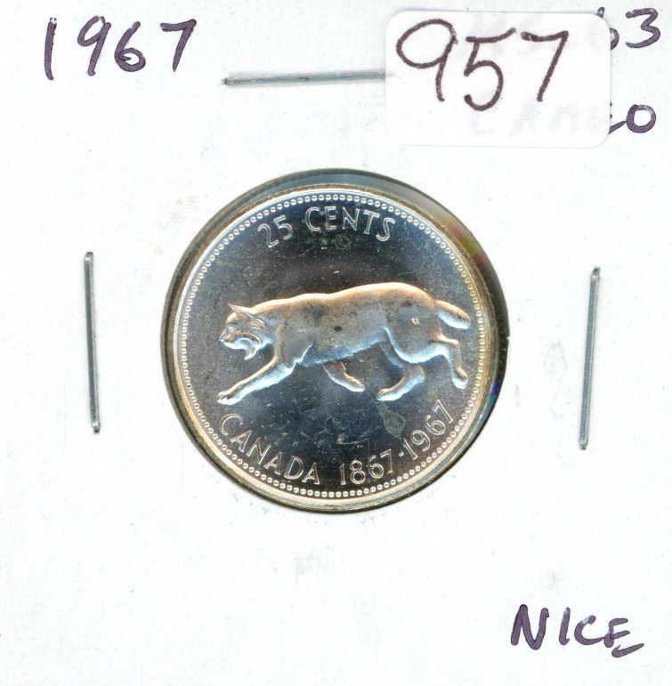 1967 Canadian Silver 25 Cents. One Year Type. MS-63 with Cameo contrast. Bright White. Nice.