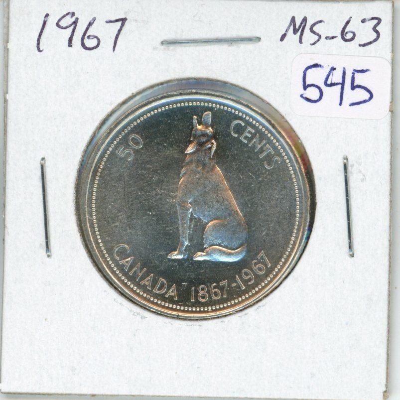1967 Canadian Silver 50 Cents. Howling Wolf. MS-63. Bright White.