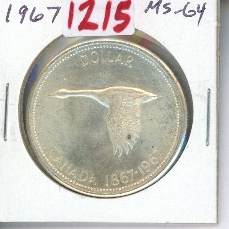 1967 Canadian Silver Dollar. Centennial. MS-64.