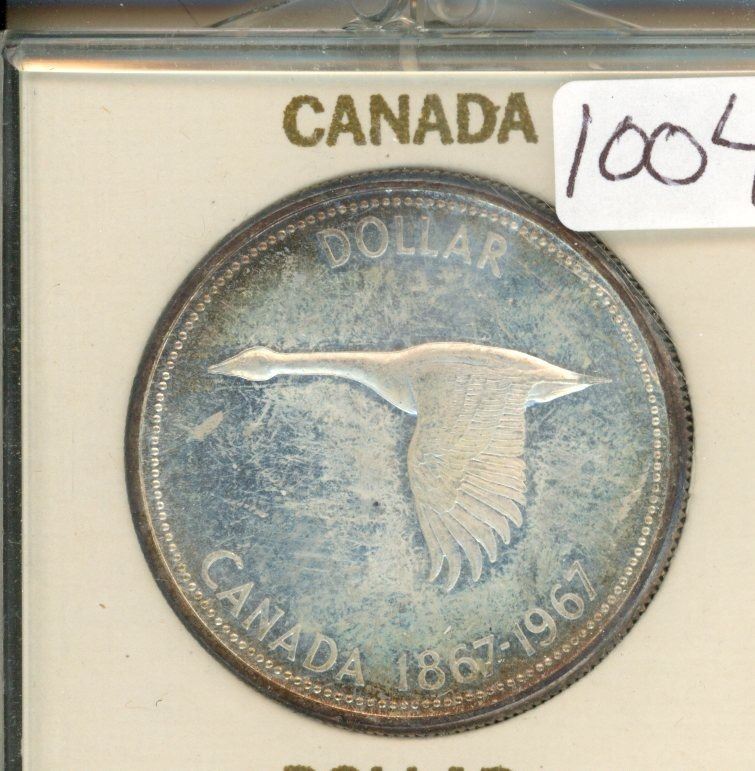 1967 Canadian Silver Dollar. Commemorates the Centennial of Canada. MS-63. Nicely Toned.