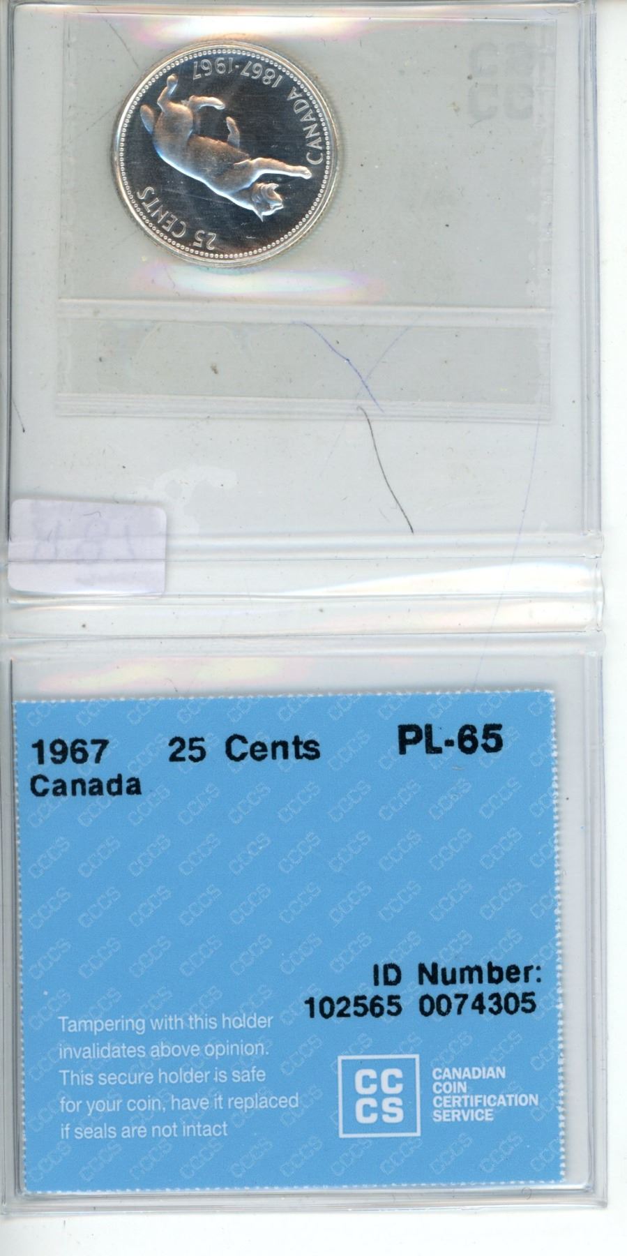 1967 Canadian Twenty-Five Cent - CCS Graded - PL65