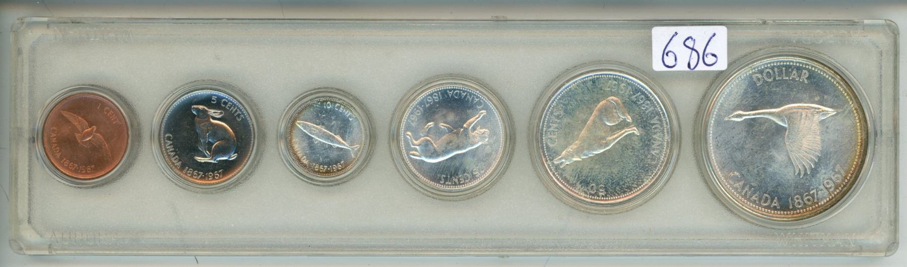 1967 Canadian Year Set. Last year of the Silver 50 Cents & Silver Dollar. BU.