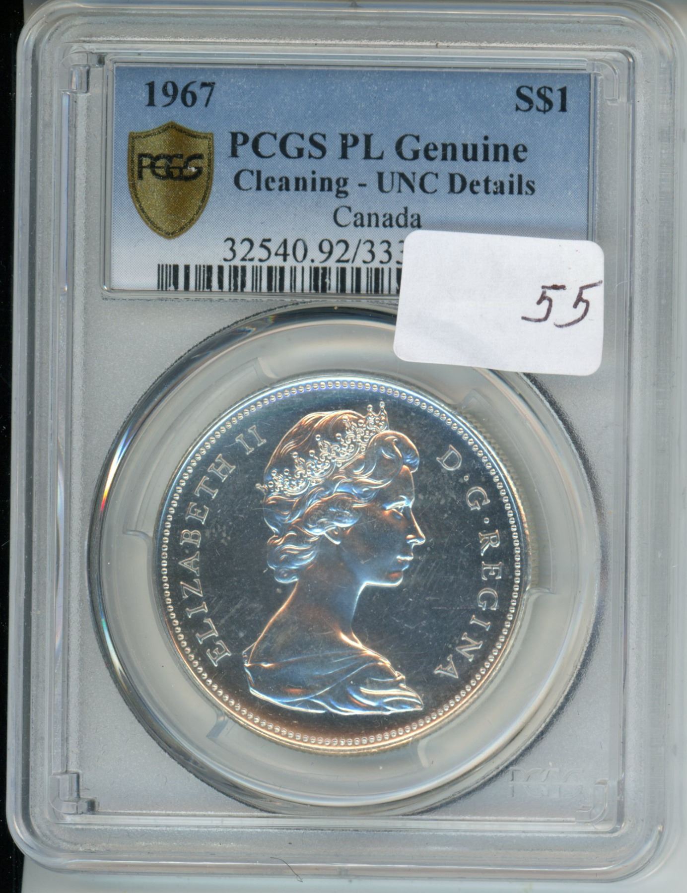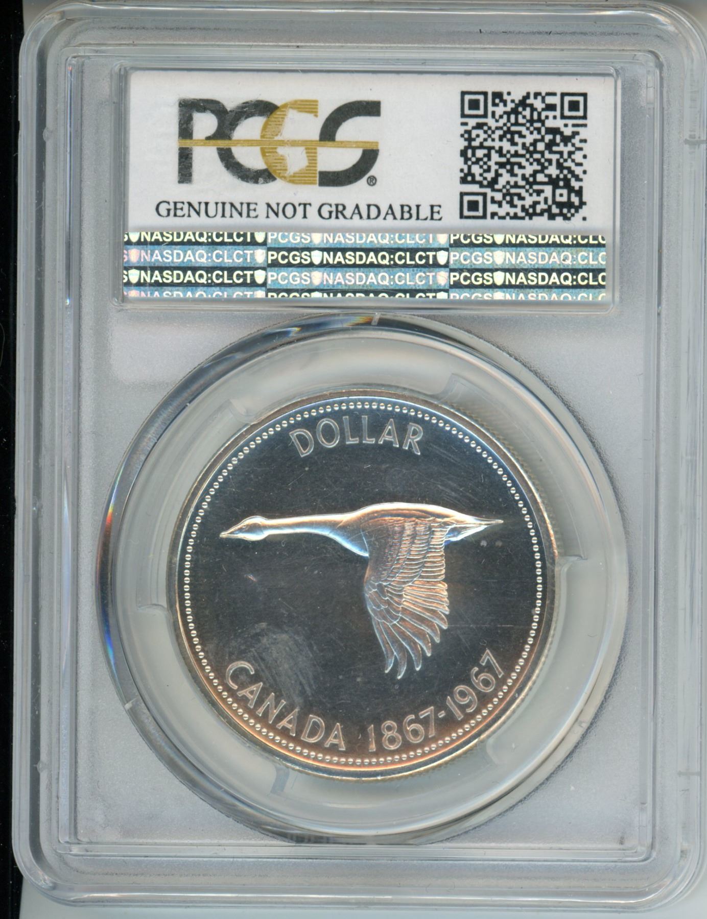 1967 Canadian silver dollar, in plastic container - PCCS graded