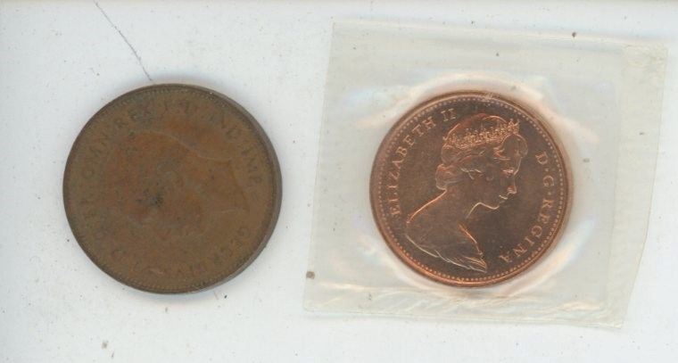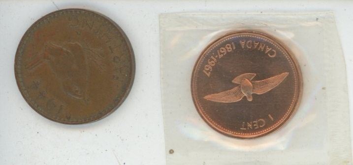 1967 Centennial Penny UNC, 1944 Farthing Great Brittain