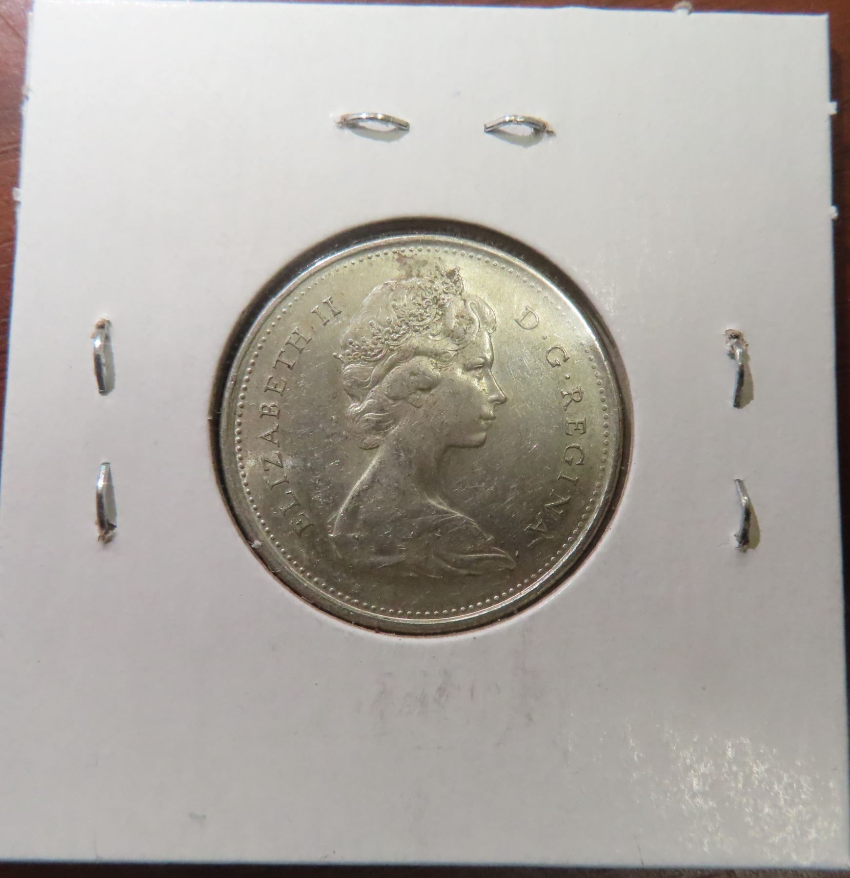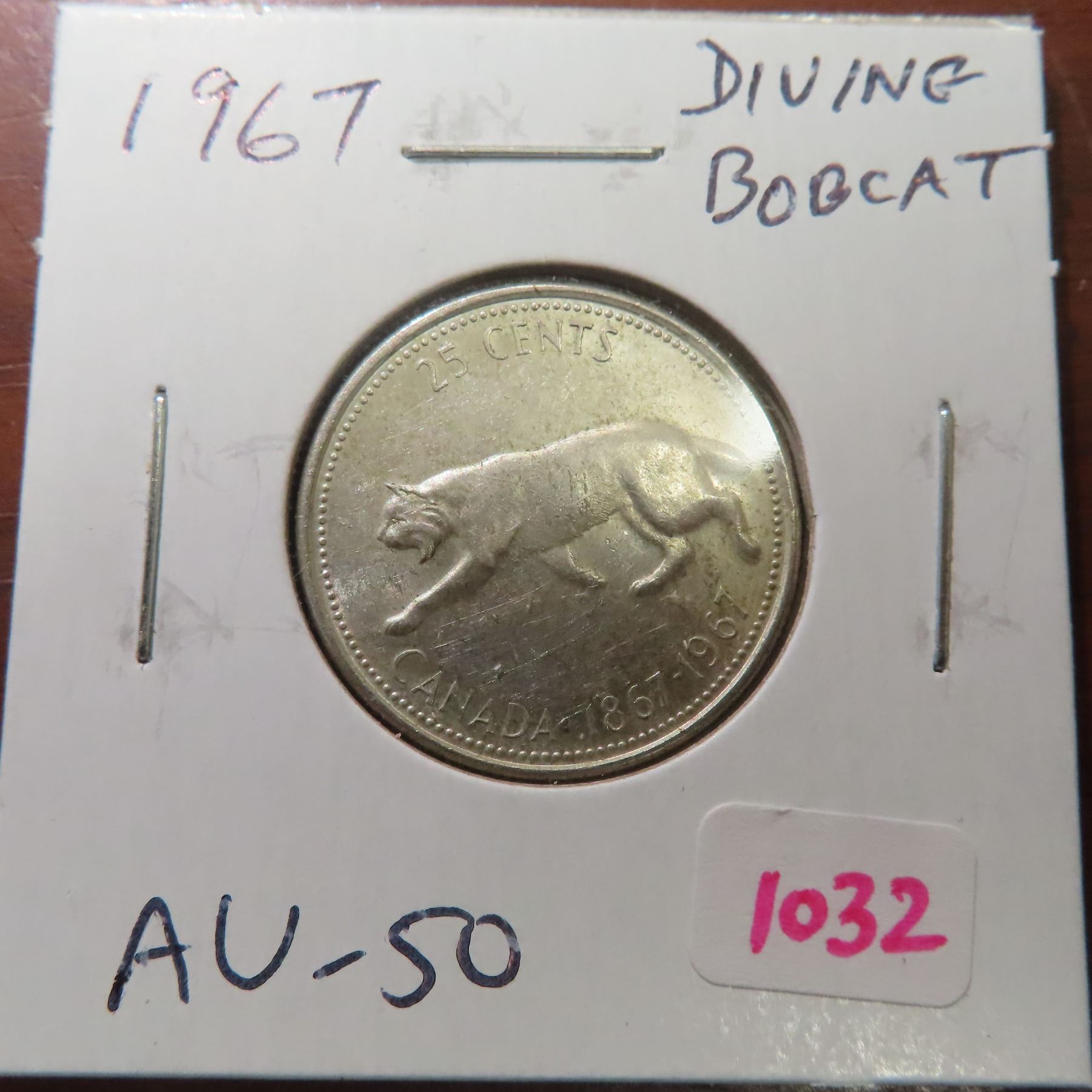 1967 Diving Bobcat 25 Cents. Rotated Die. AU-50. Scarce.